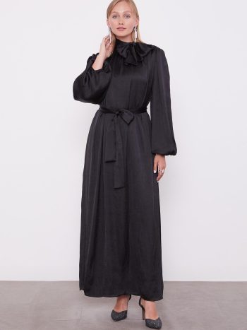 فستان ساتان مكرمش بتفاصيل حزام أسود