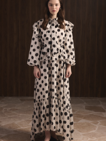 فستان تنورة منقط مع كشكش – بيج