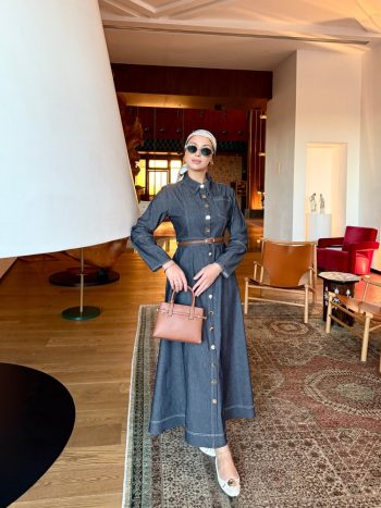 هذا الفستان الأنيق مصنوع من قماش دنيم مارسيل من الدرجة الأولى (نسيج قطني طبيعي دون معالجة كيميائية). يتميز الفستان بسحاب