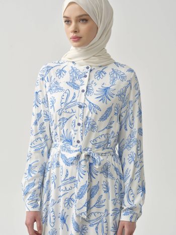 فستان مزخرف بحزام – أزرق