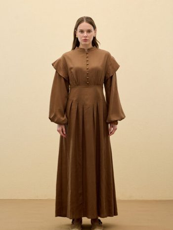 فستان بتنورة مجمعة ونصف طية – مرجاني