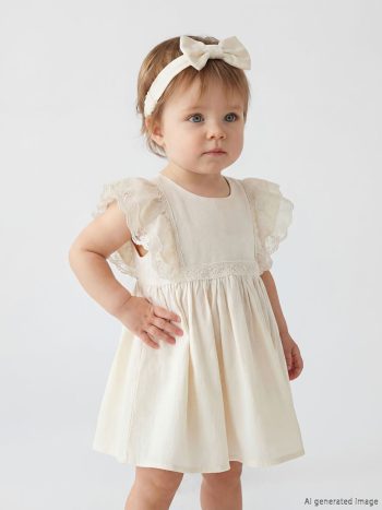 فستان LCW للبنات الصغيرات برقبة بيبي وتطريز دانتيل باللون الكريمي متاح الآن لدى LCW مع خصومات حصرية، خيارات الدفع بالتقسيط،