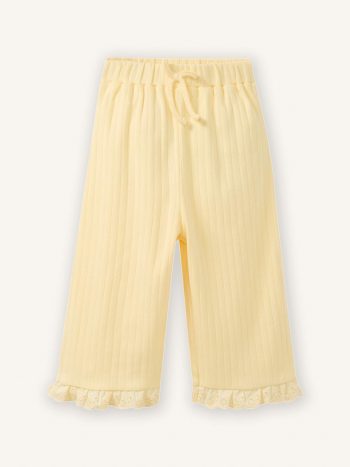 يتميز هذا البنطلون المموج بنقاط منقطة أنيقة وقصة أرجل واسعة تمنحه تدفقاً رشيقاً، مما يجعله خياراً جذاباً ومريحاً للفتيات الرضع.