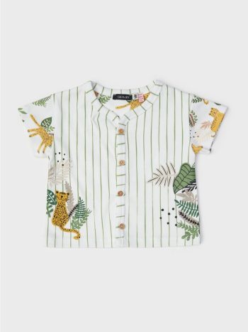 مصمم من قماش قطني ناعم ومرن، يقدم هذا التيشيرت المخطط خيارًا مريحًا وأنيقًا للفتيات الرضع. هيكله الخفيف يتناسب مع البشرة