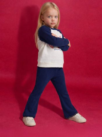 هذا الطقم المكون من قطعتين لبنات الأطفال يتكون من سويشرت مطبوع وليقينز. مصنوع من قماش ناعم ومرن، يقدم راحة طوال