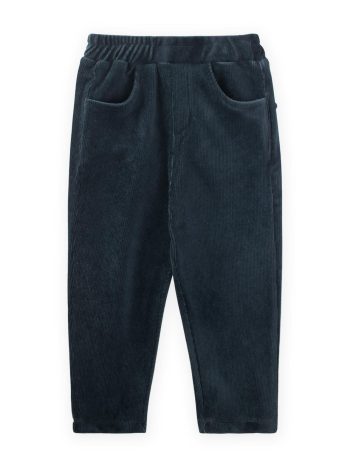 بنطلون مخمل مطرز للأعمار من 1 إلى 8 سنوات باللون الأزرق الداكن