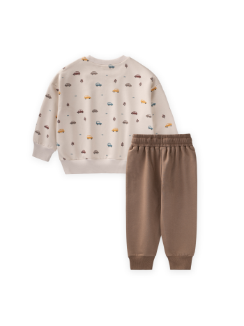 مجموعة سويشيرت مطبوع عليها سيارة للعمر 1-5 سنوات بلون البيج