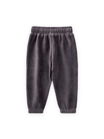 بنطلون رياضي قطيفة مضلع للأطفال 1-10 سنوات باللون الرمادي الدخاني