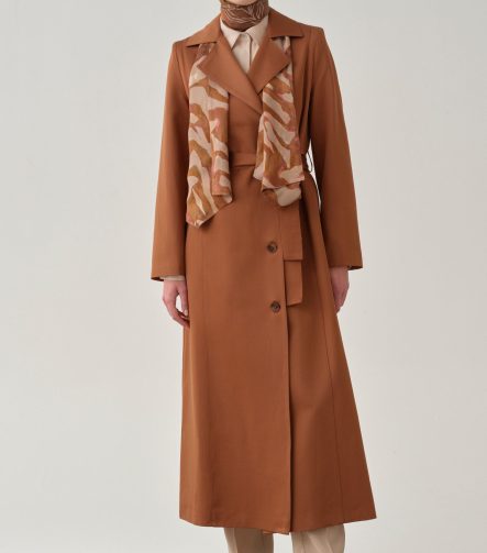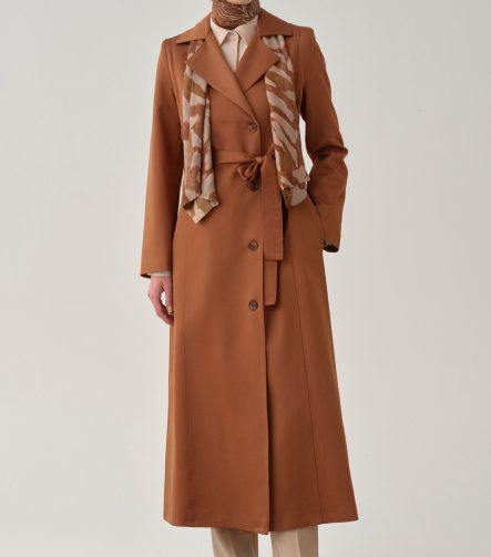 معطف ترنش بتفاصيل وشاح غارني – لون تابا