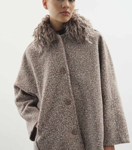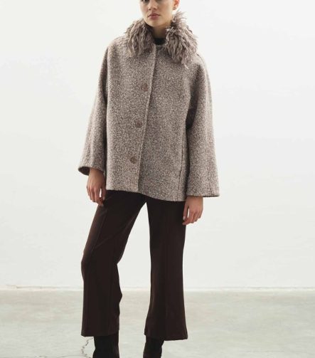 معطف قصير من فراء المنك مع ياقة من الفرو