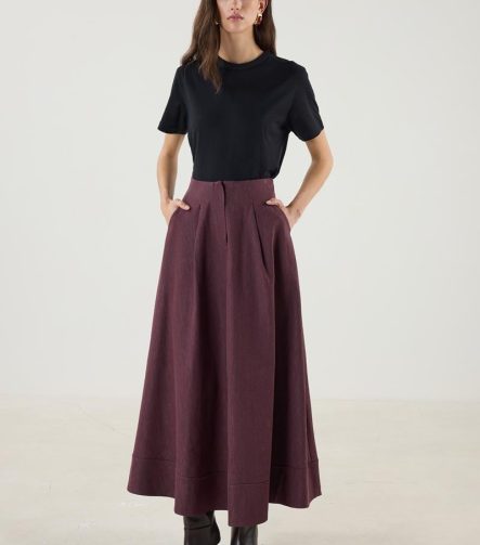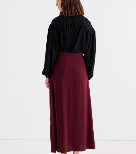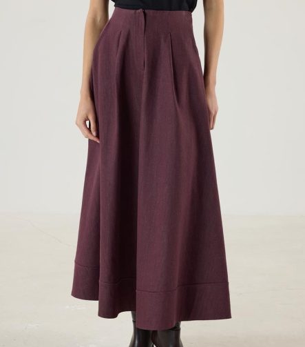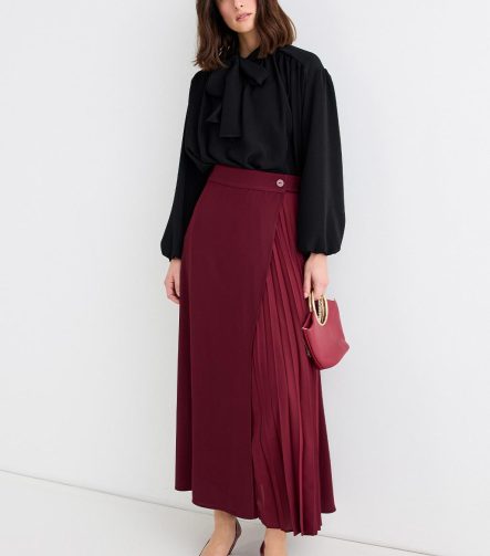 تنورة ريتا المطوية ذات التفاف باللون البورجوندي