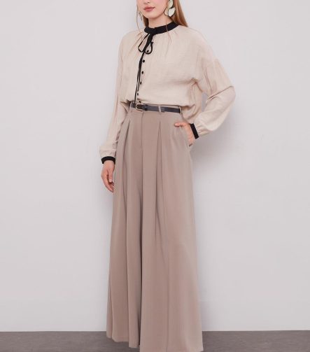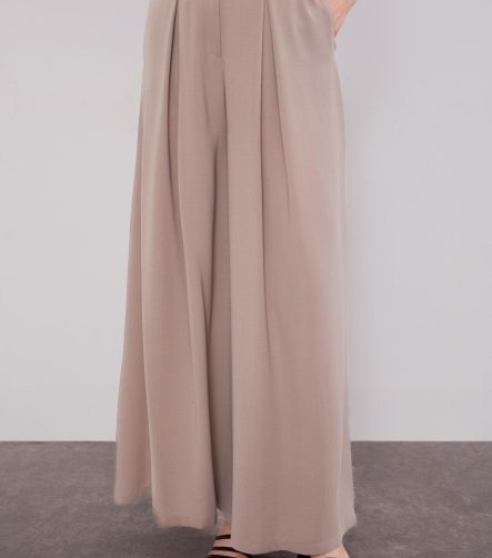 تنورة سروال واسعة الأرجل بتفاصيل البليسيه بلون المنك