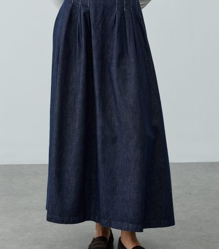 تنورة دنيم ماكسي مزركشة باللون الأزرق الداكن