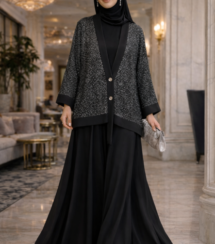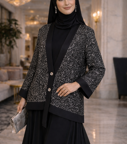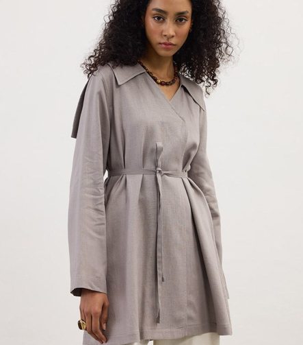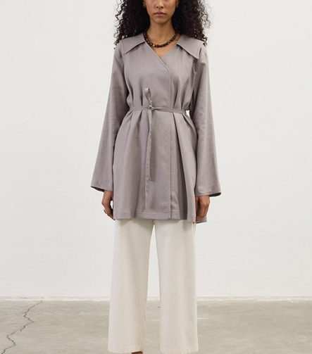 جاكت كتان 100% ذو ياقة واسعة ورقبة على شكل V