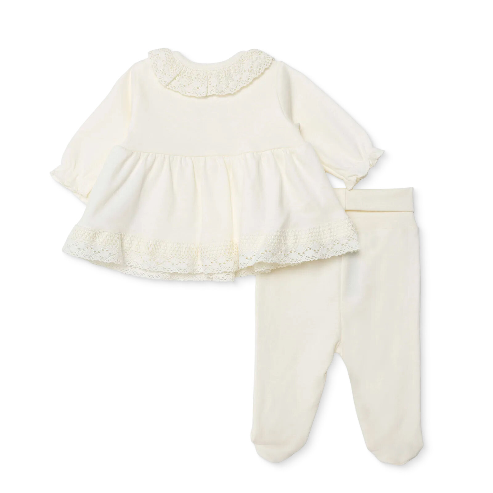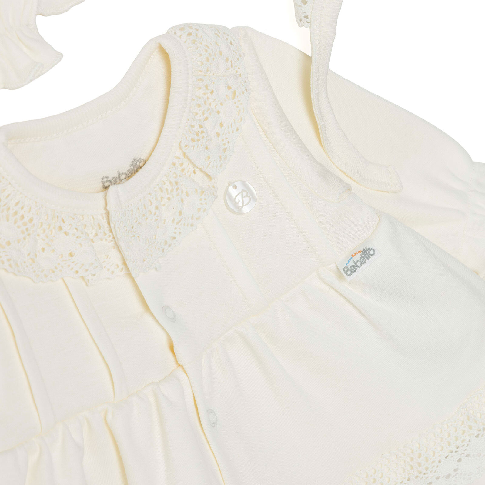 ببيتو للبنات، طقم خروج المستشفى 5 قطع بأزرار، ستايل احتفالي، ياقة مهدبة، بنطلون طويل، أكمام طويلة