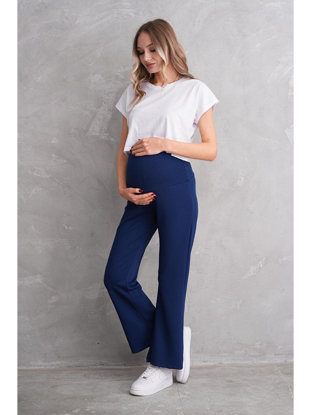 بنطلون رياضي من قماش المودال قابل للتعديل عند الخصر بنمط البنطال الإسباني للنساء الحوامل وبعد الولادة باللون الأزرق الداكن