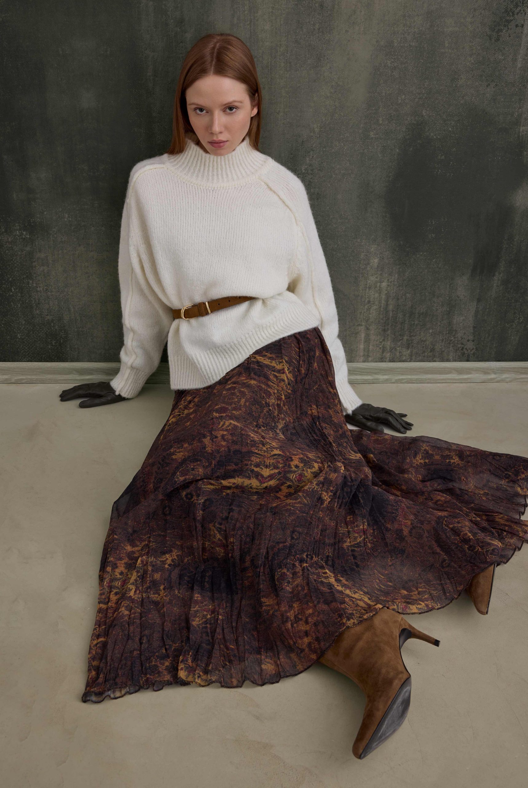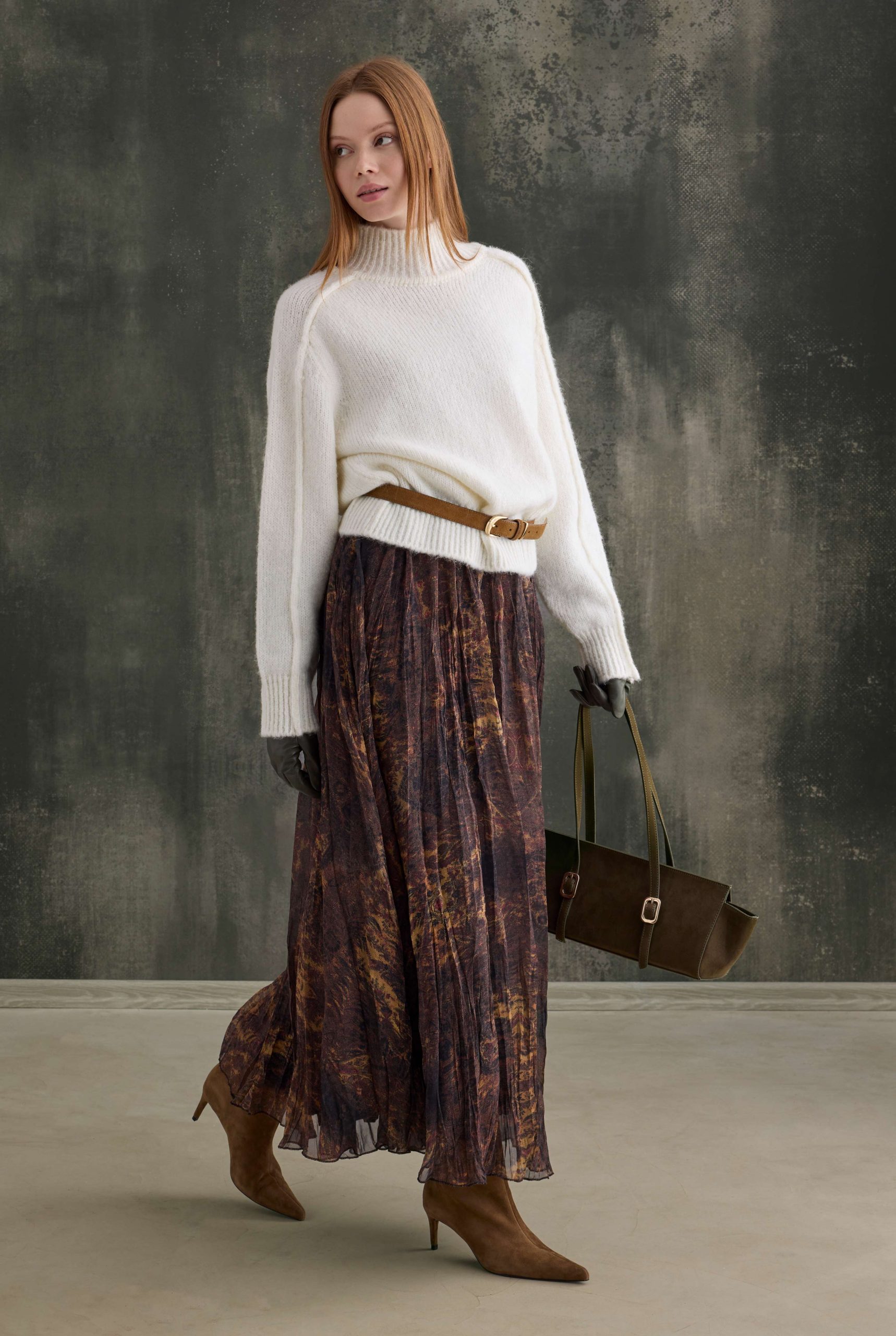 مستوحاة من الأسلوب البوهيمي، تقدم هذه التنورة شكلاً أنثوياً وطبيعياً بملمسها المموج وإحساسها الخفيف بالشيفون. يصبح شكلها المتدفق أكثر وضوحاً مع الحركة، مما يضفي إحساساً أنيقاً بالحركة. يمكن تنسيقها بسهولة للمظهر اليومي أو استخدامها كمكمل مثالي للفساتين الرومانسية والفريدة.