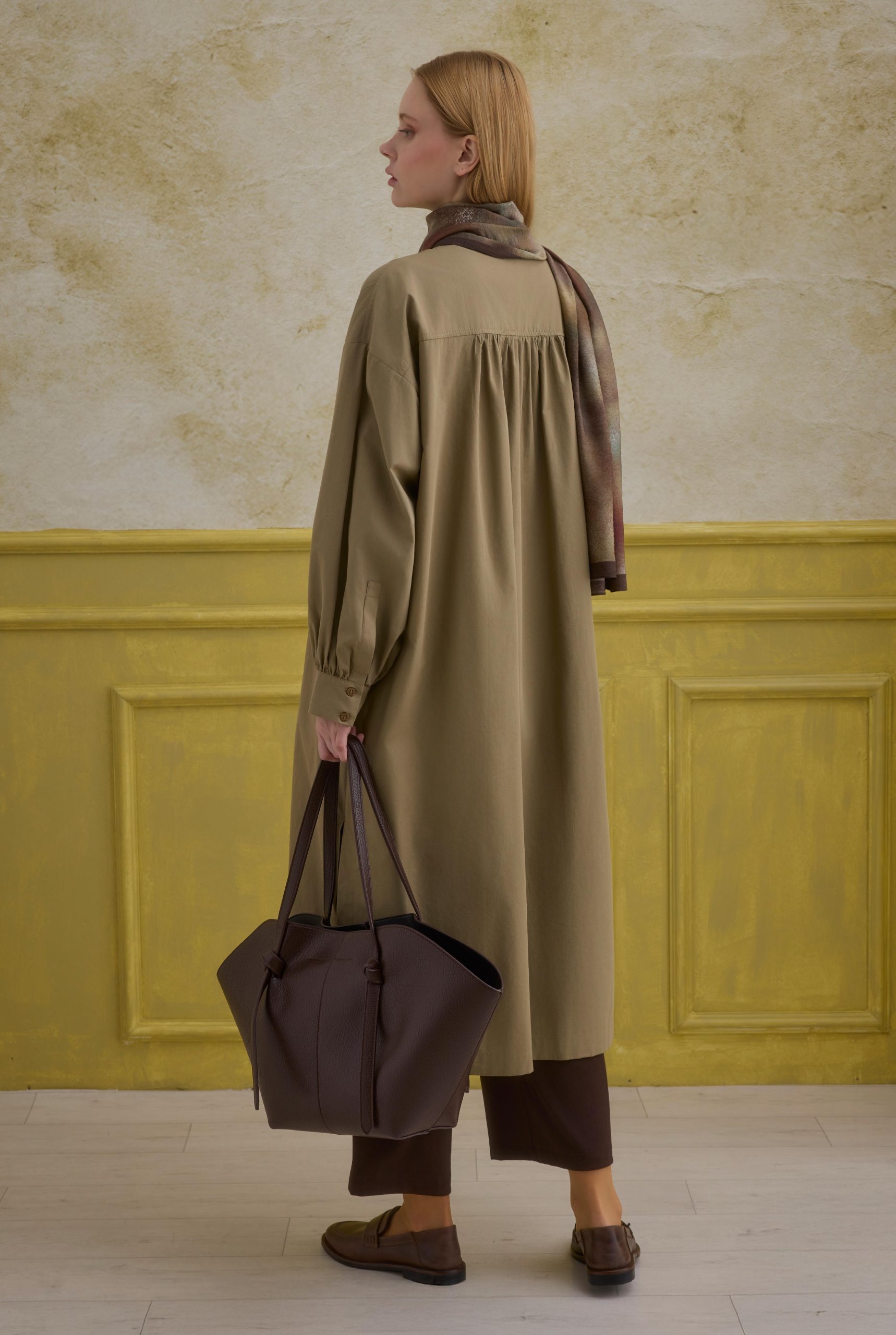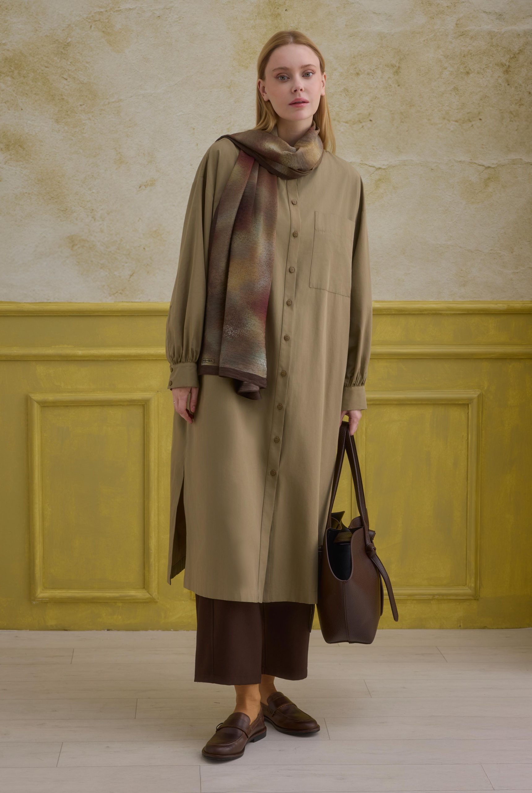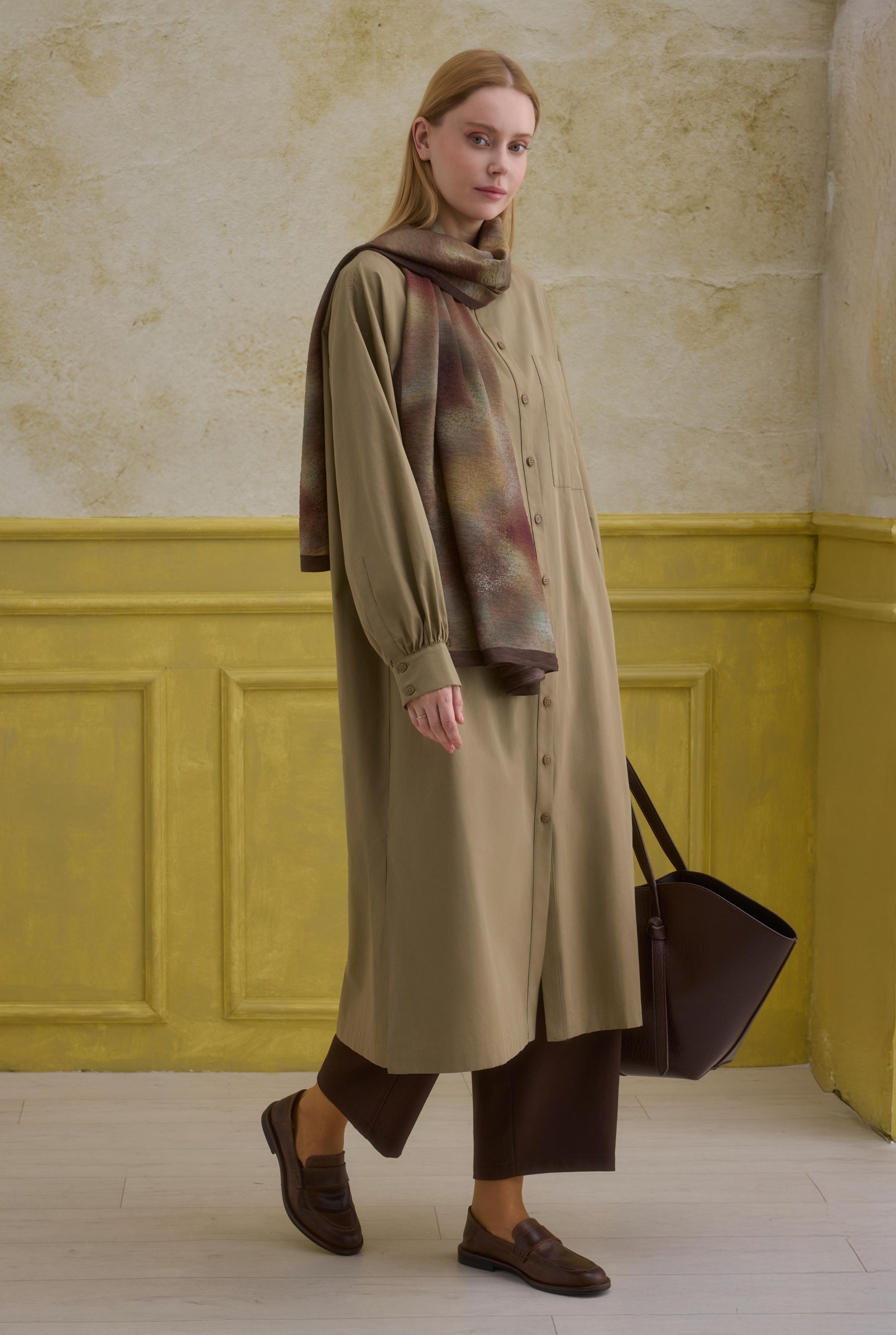 تونيك طويل بخط عنق على شكل V بلون الطين الفاتح