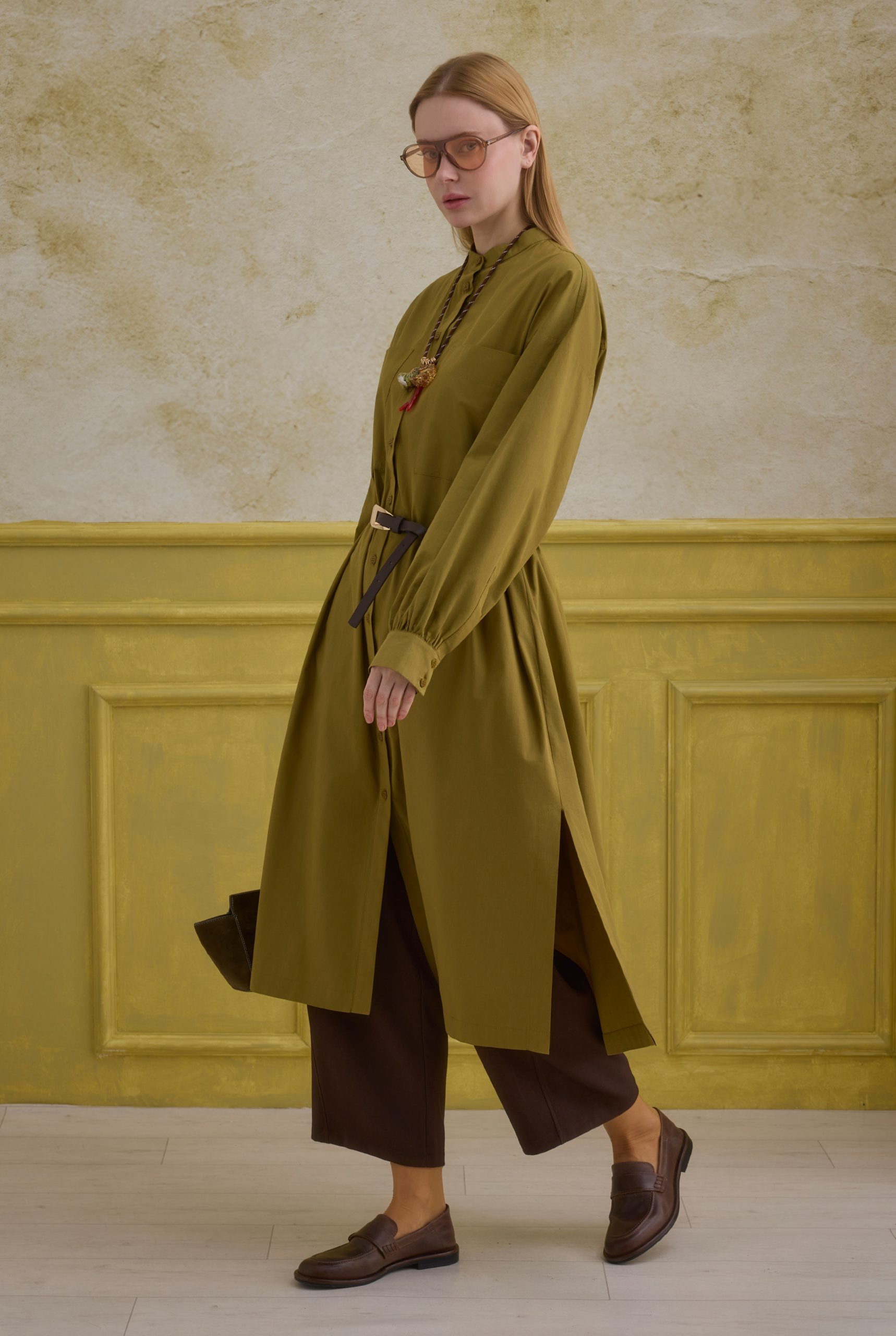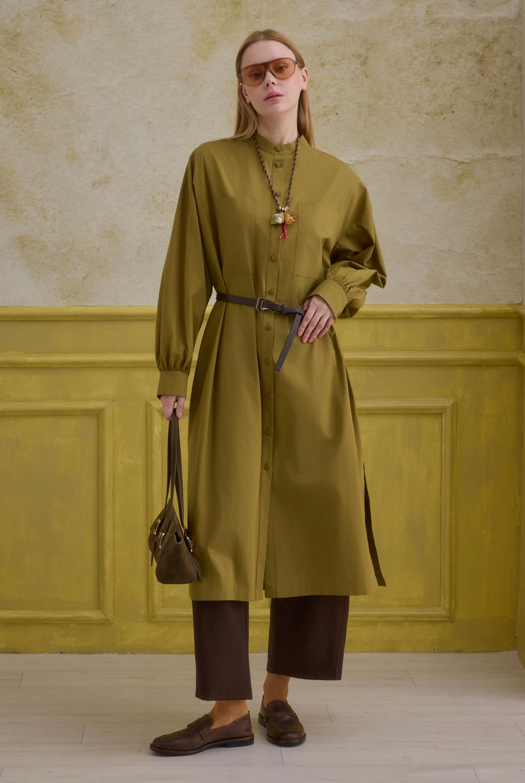 تونيك طويل ياقة ماندالين أخضر زيتي