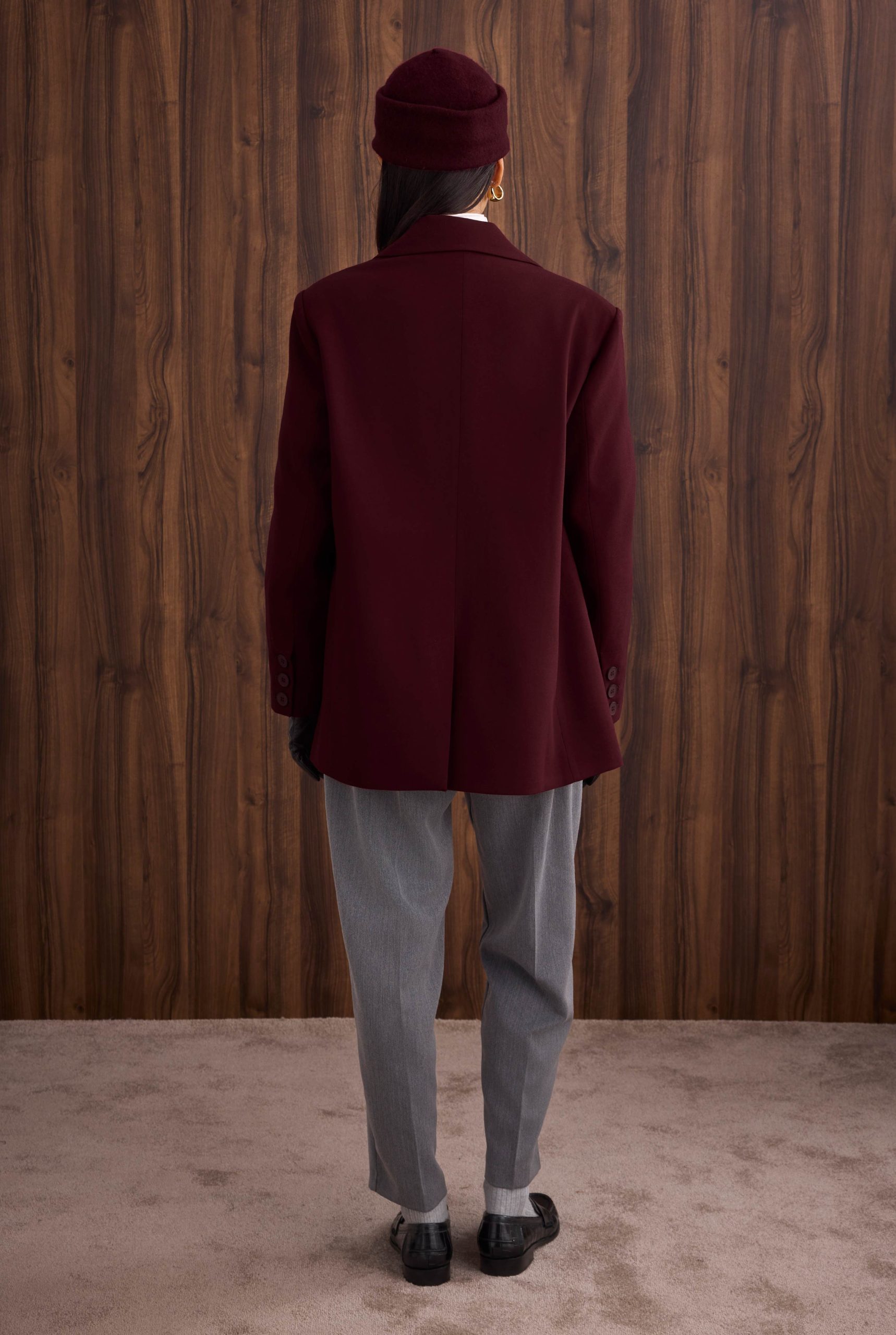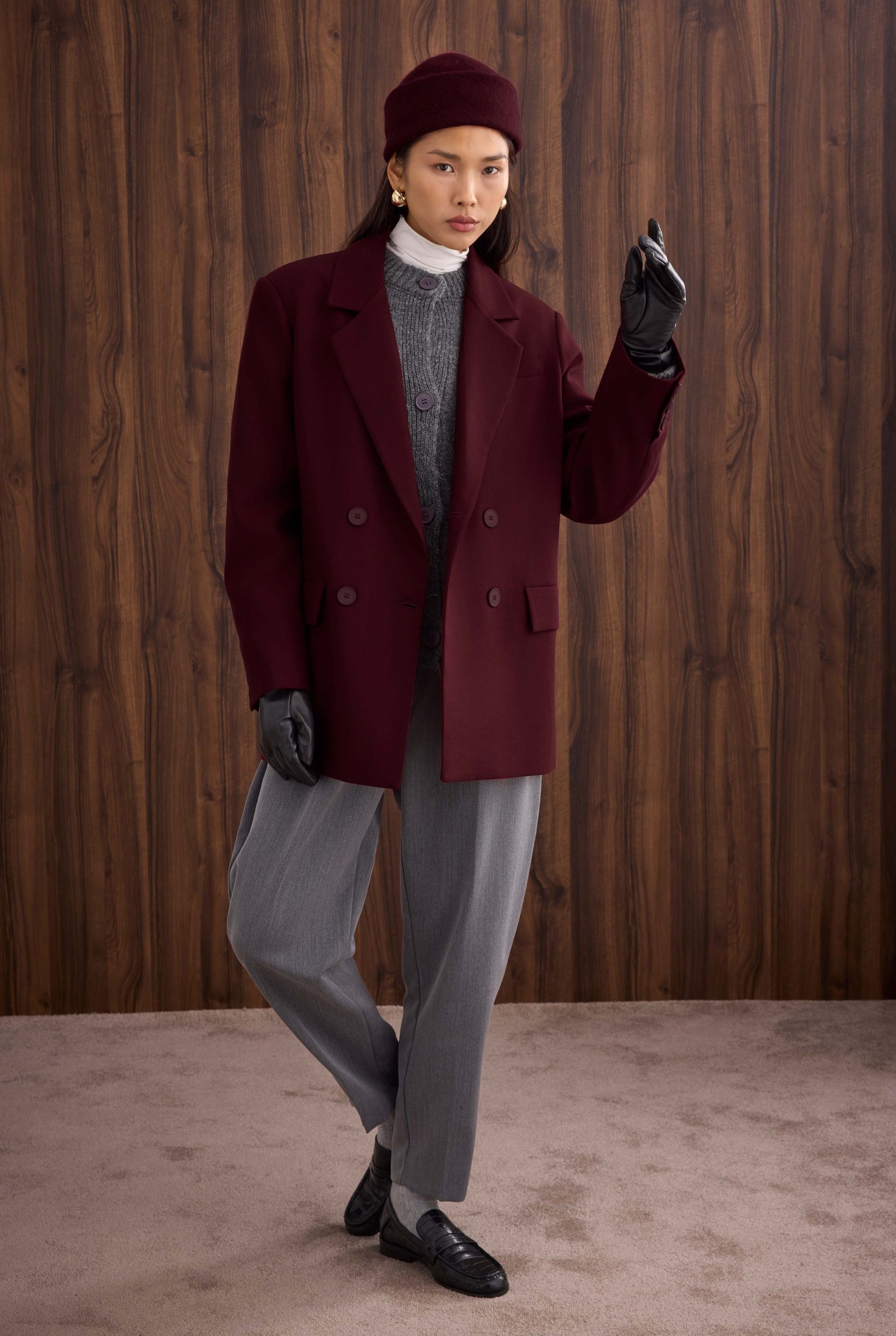 مصنوع من خليط 64% بوليستر، 33% فيسكوز، و3% لايكرا، يجسد هذا الجاكيت الرقيق من الكشمير الأناقة العصرية بمظهره المكرر.