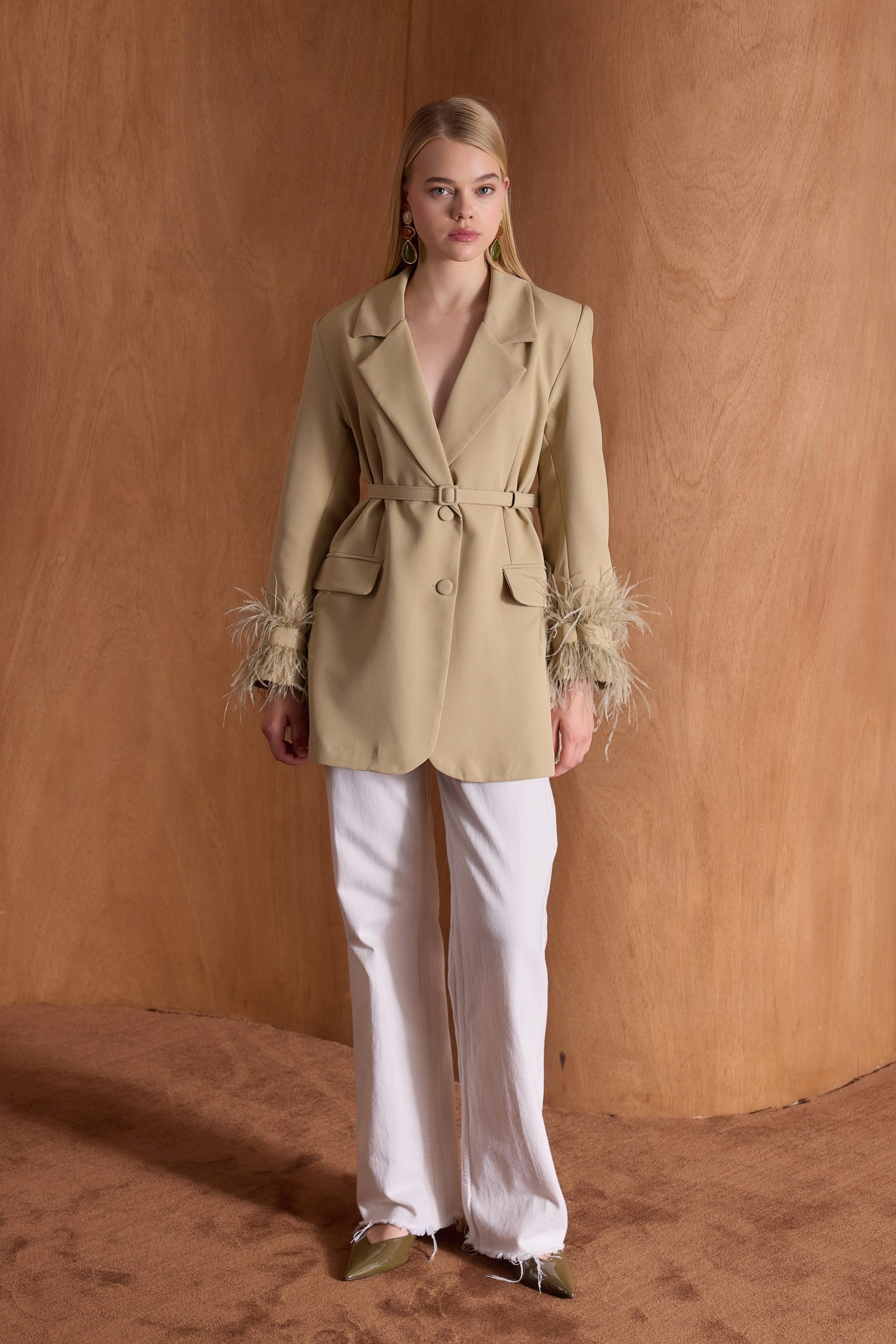 جاكيت لونارا بأكمام مزينة بالريش – تشاغلا