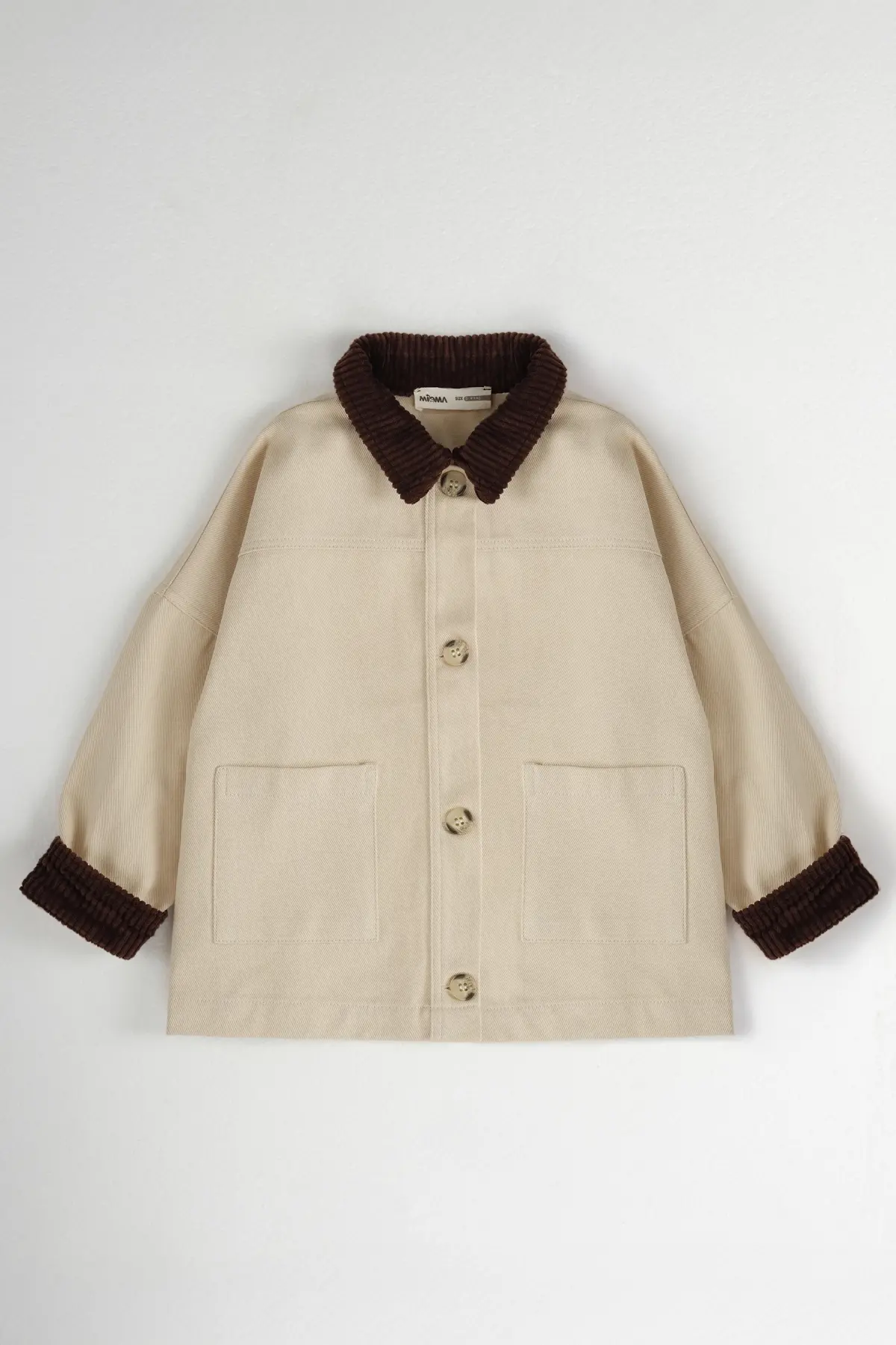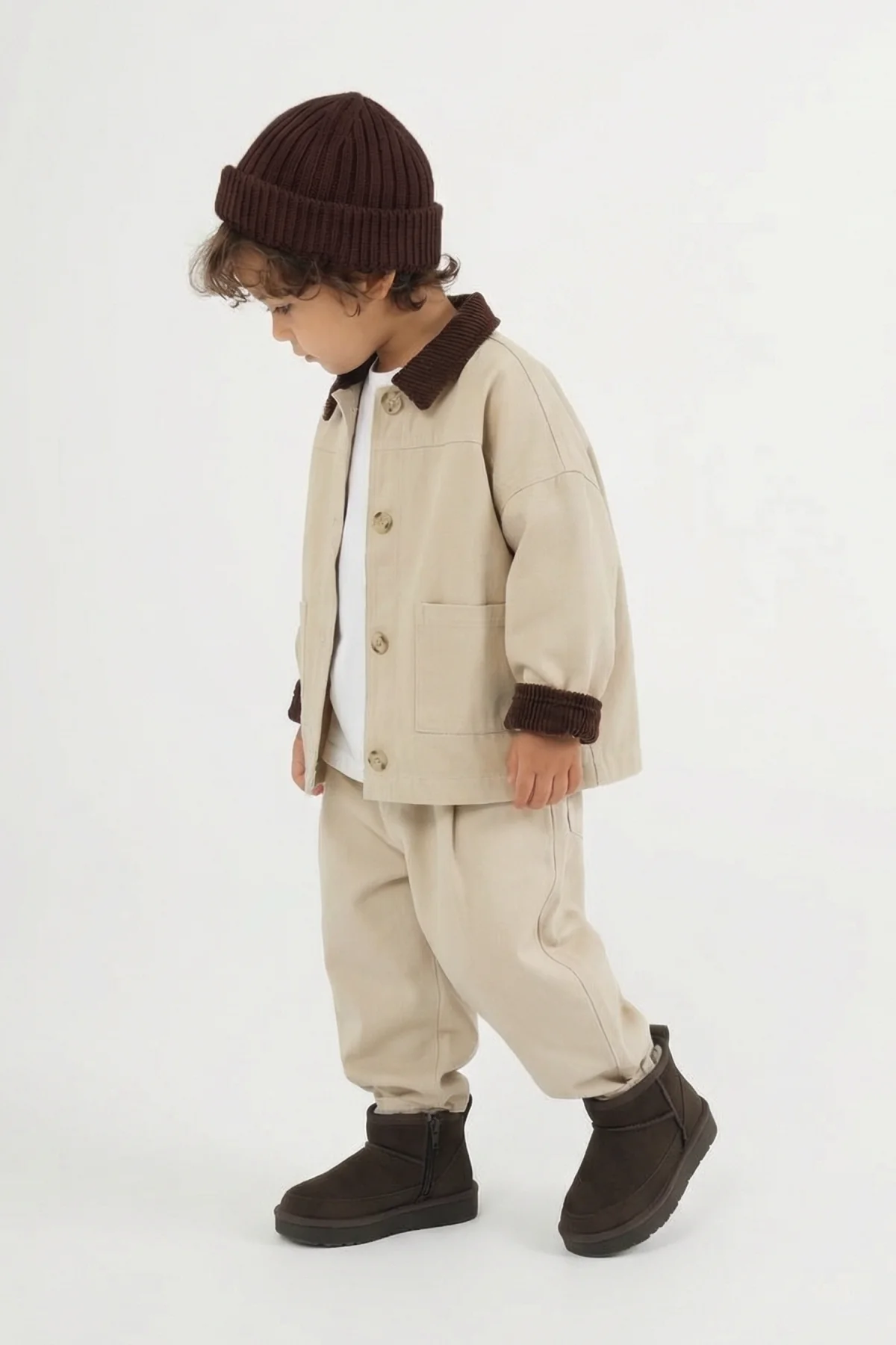 سترة مصنوعة من قماش قطني 100٪، تتميز بأزرار أمامية، وجيبين علويين بغطاء، وياقة وأكمام مخملية، مع تفاصيل مضلعة في الأمام والخلف. هذه السترة تتميز بقصة منتظمة. للحصول على مظهر مشابه للعارضة، يمكنك اختيار الفئة العمرية المناسبة. المقاسات: 1-2 سنة: طول الظهر 40 سم | 2-3 سنوات: طول الظهر 43 سم | 3-4 سنوات: طول الظهر 46 سم | 4-5 سنوات: طول الظهر 49 سم | 5-6 سنوات: طول الظهر 52 سم | 7-8 سنوات: طول الظهر 58 سم