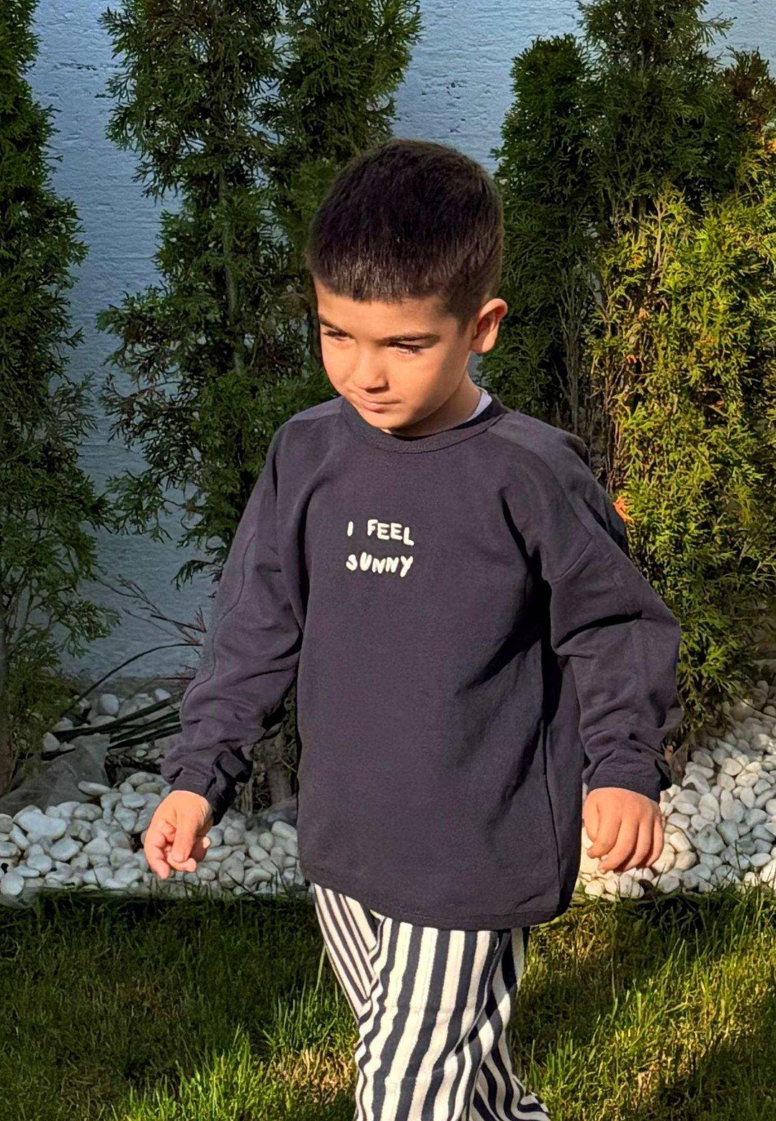 سترة رياضية مطرزة للأعمار من 1 إلى 7 سنوات باللون الأنثراسايت