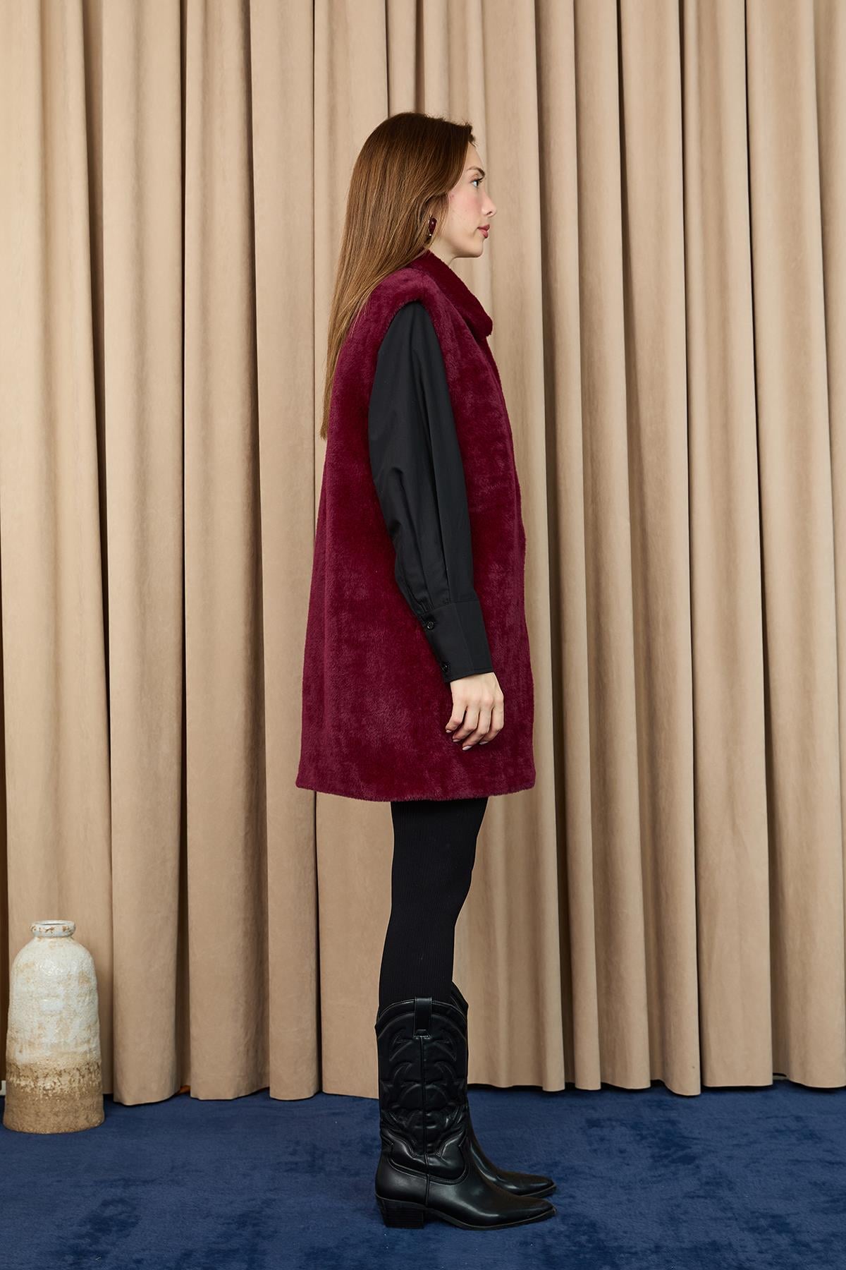 تمنحك صديري بحرف V إطلالة أنيقة تبرز تفاصيل القطع العلوية بفضل تصميمها المميز، مما يضفي لمسة من الأناقة حتى عند ارتدائها بمفردها. يمكن تنسيقها بسهولة مع البلوزات أو القمصان أو الملابس المحبوكة الخفيفة، لتضمن لك مظهراً أنيقاً طوال اليوم، سواء في المكتب أو أثناء التنقل في المدينة.