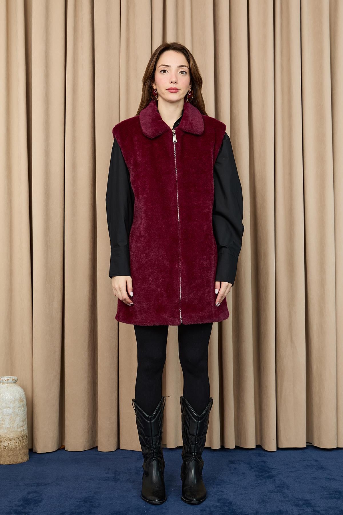 سترة صوفية نسائية بسحاب – 15238YLK – DAMSON