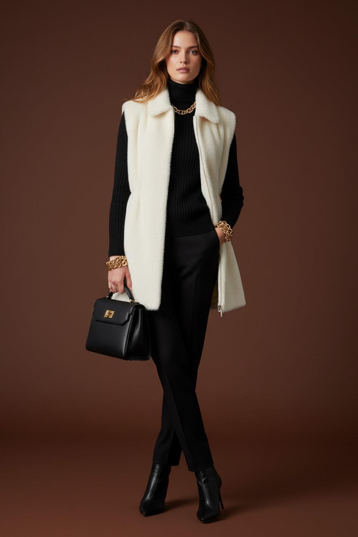 تمنحك صديري بحرف V إطلالة أنيقة تبرز تفاصيل القطع العلوية بفضل تصميمها المميز، مما يضفي لمسة من الأناقة حتى عند ارتدائها بمفردها. يمكن تنسيقها بسهولة مع البلوزات أو القمصان أو الملابس المحبوكة الخفيفة، لتضمن لك مظهراً أنيقاً طوال اليوم، سواء في المكتب أو أثناء التنقل في المدينة.