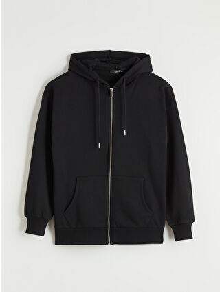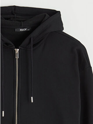 سويتشيرت نسائي سميك بسحّاب مع قلنسوة باللون الأسود