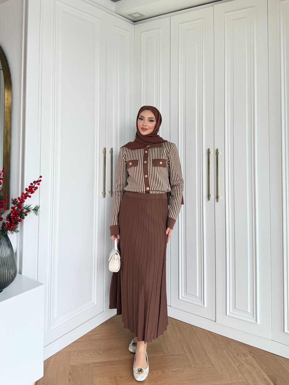 طقم التنورة البني جُونُل