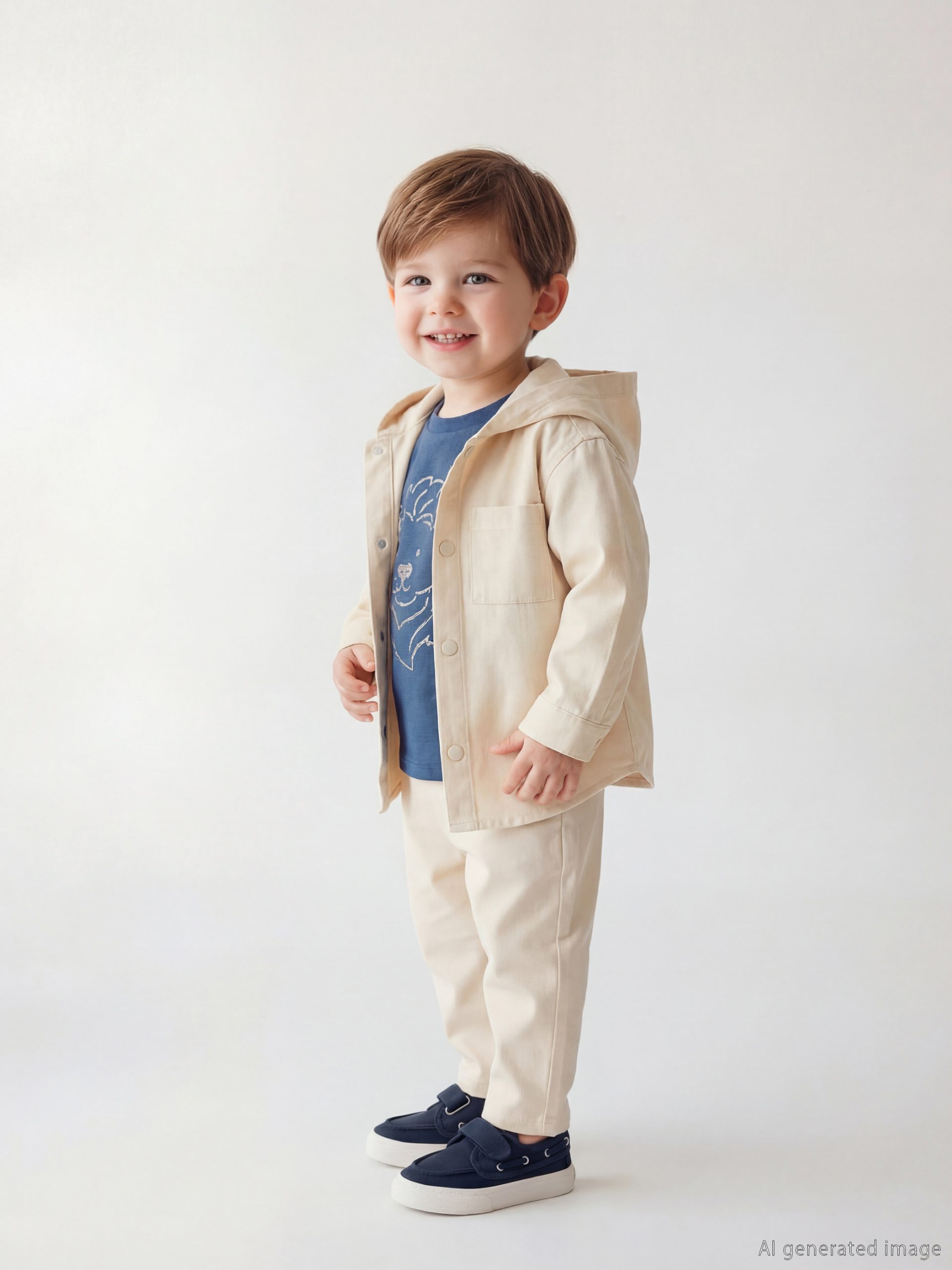 طقم رضيع صبي بثلاث قطع مع قلنسوة بلون البيج