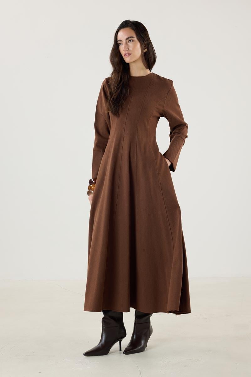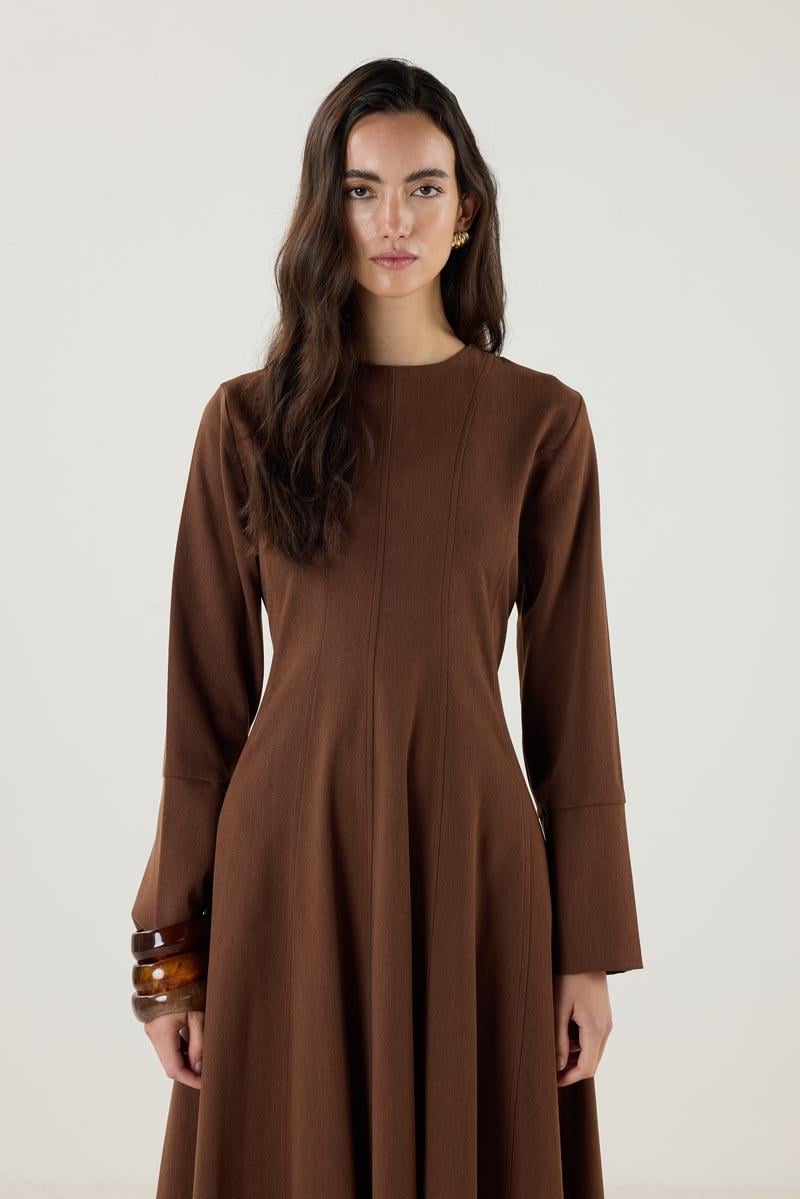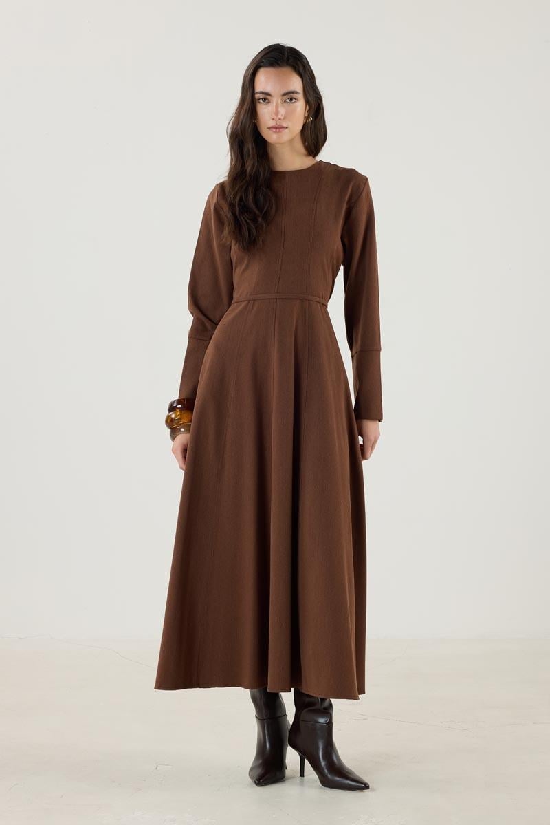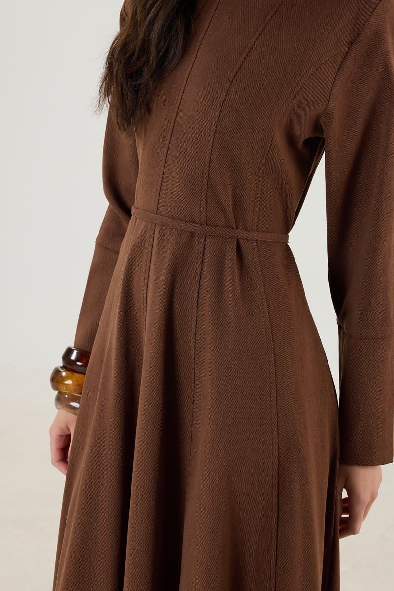 فستان ماكسي بالوشاح بلون القهوة المرّة