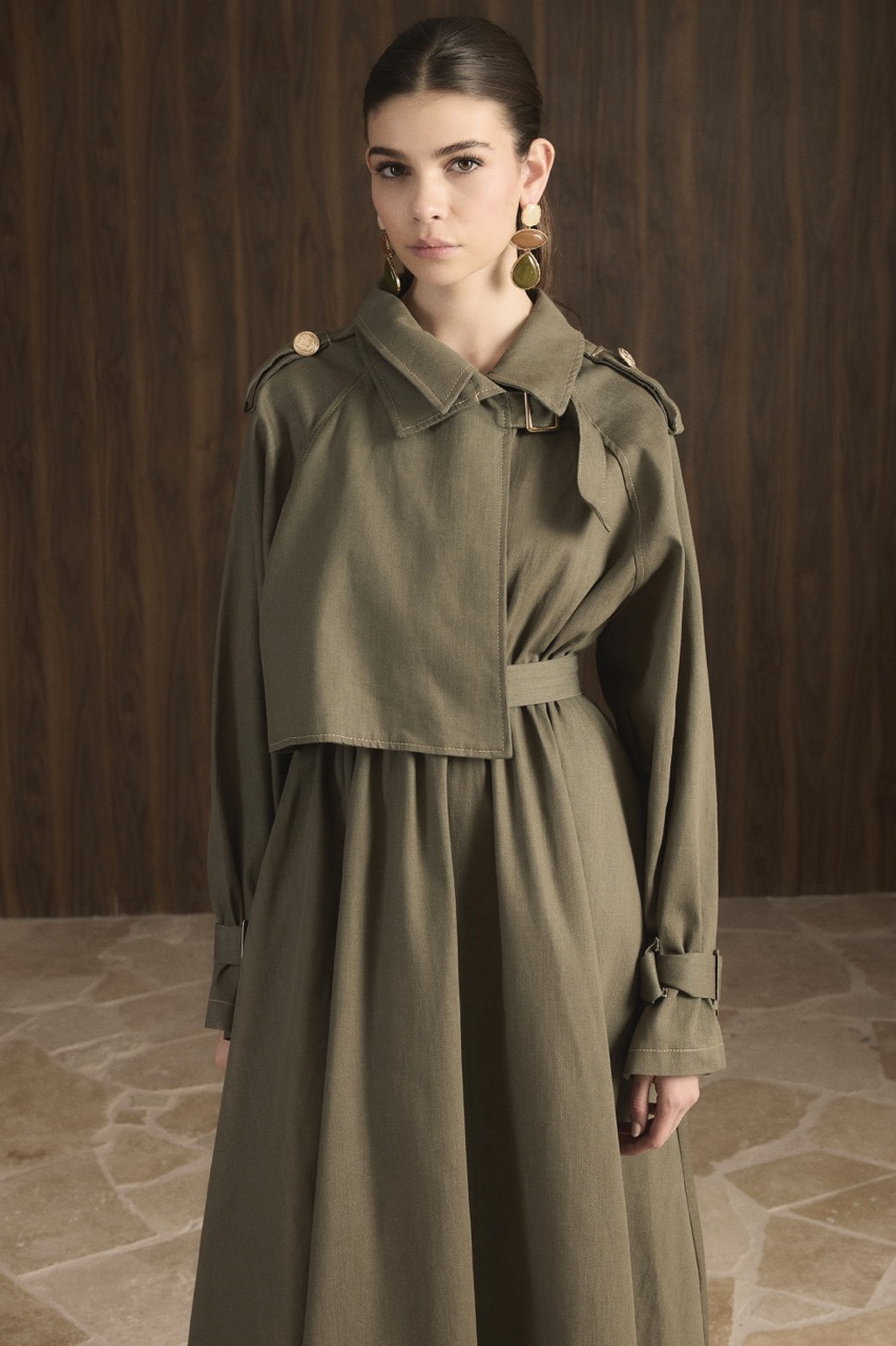 يتميز فستان فيرا ترينش بتصميم أنيق وعصري، مما يجعله قطعة أساسية لا غنى عنها في خزانة ملابسك في كل الفصول. يبرز أناقتك في الاستخدام اليومي وفي المناسبات الخاصة بفضل قماشه عالي الجودة وتفصيله الراقي. يقدم اللون الخاكي أسلوبًا طبيعيًا وبسيطًا.