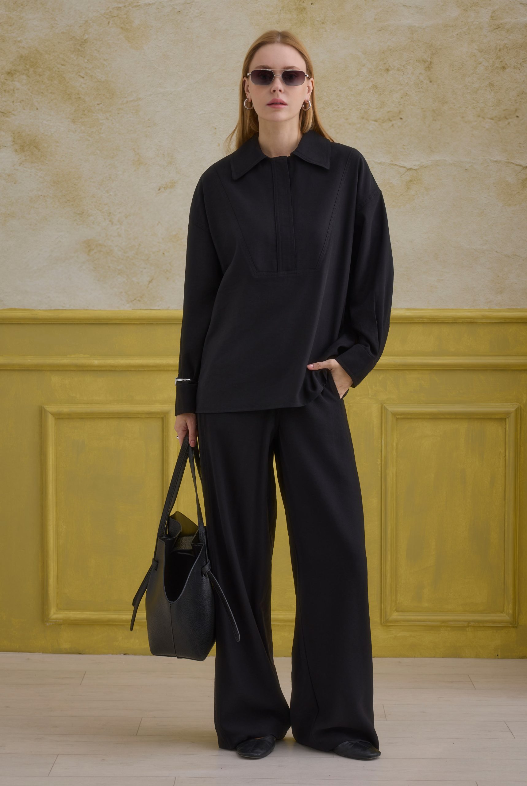 قميص أسود بتفاصيل سحاب