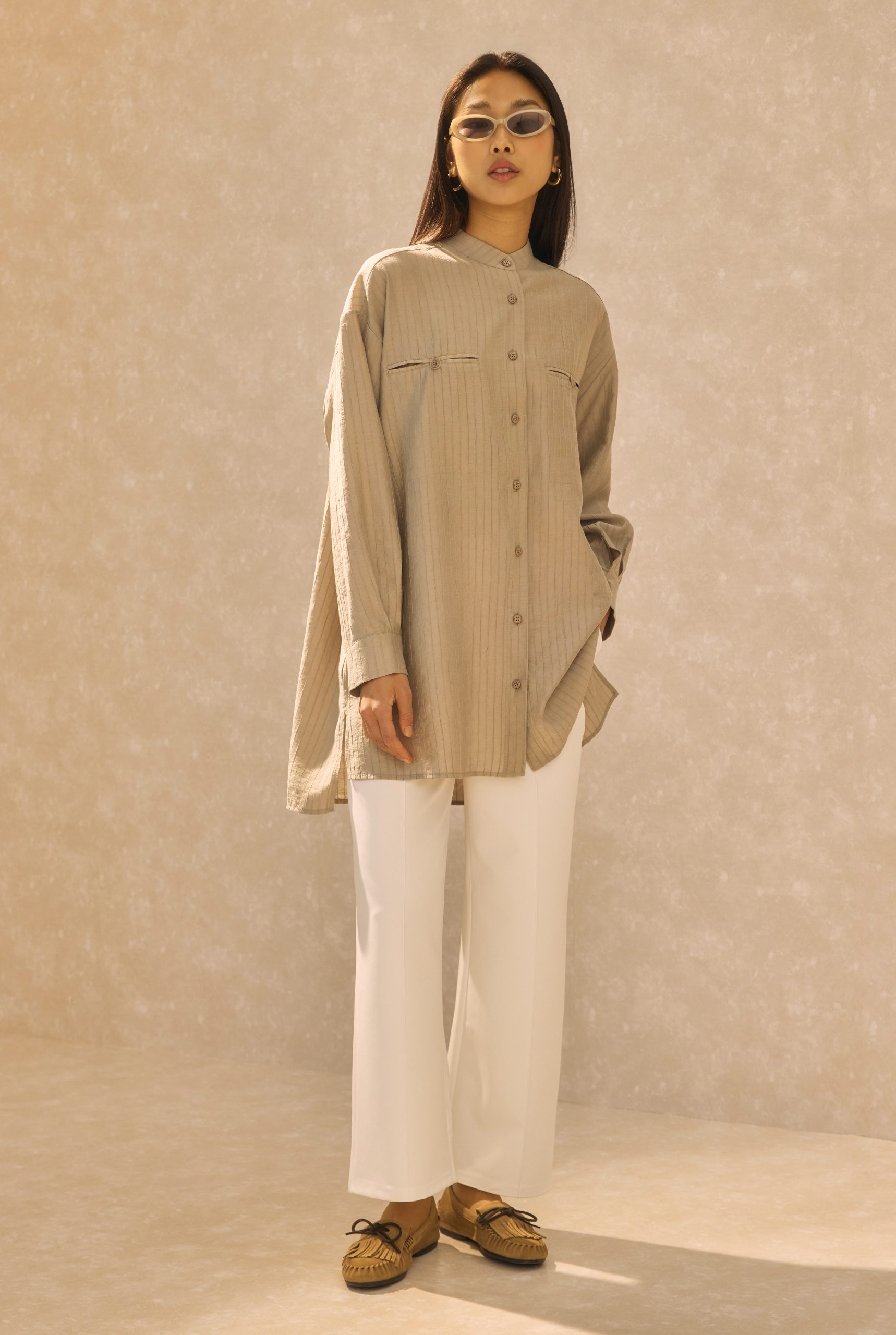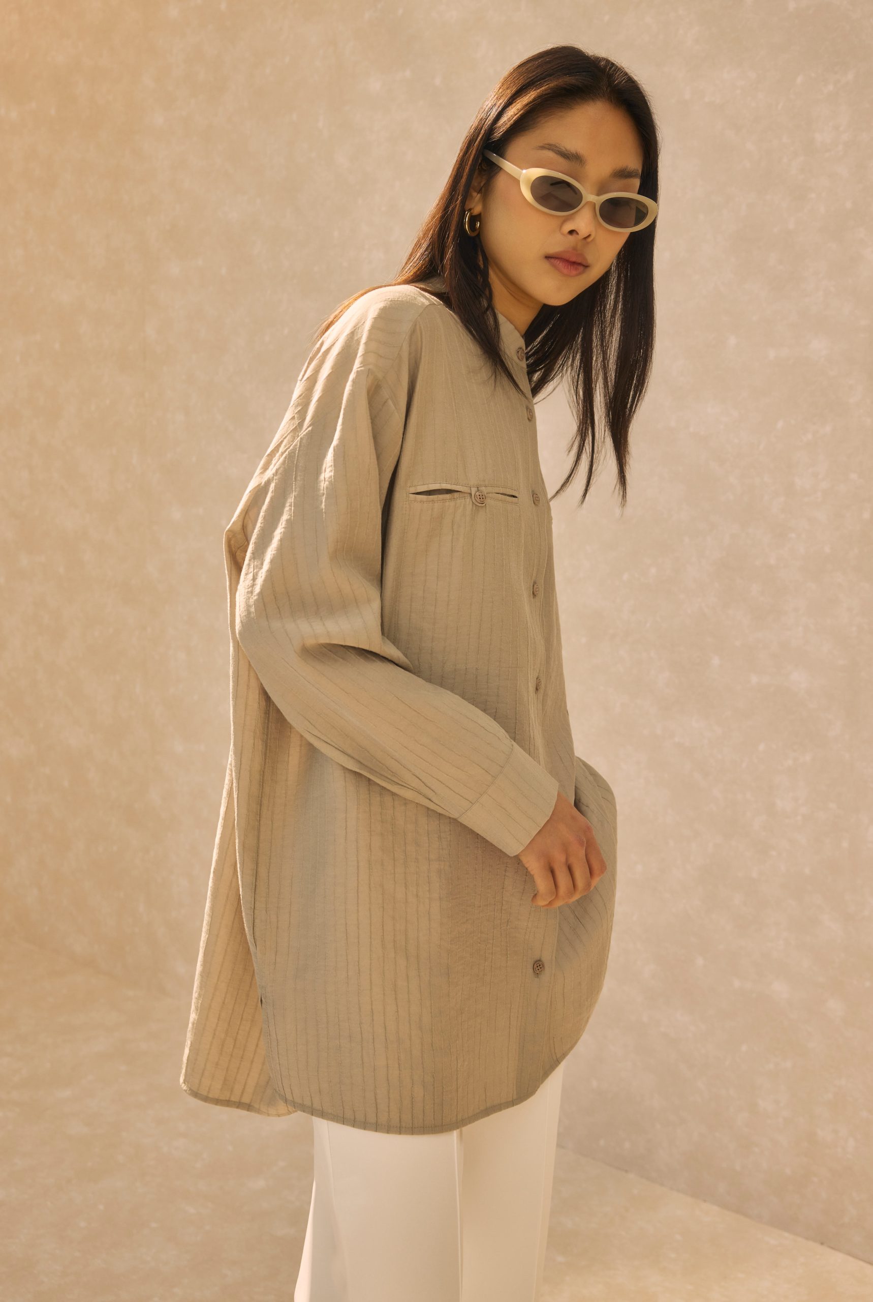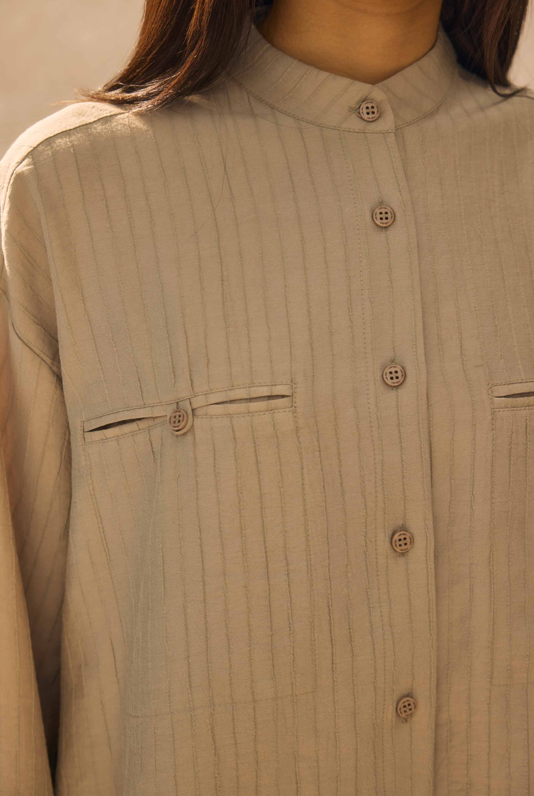 قميص بيج بتفاصيل جيب مخفي