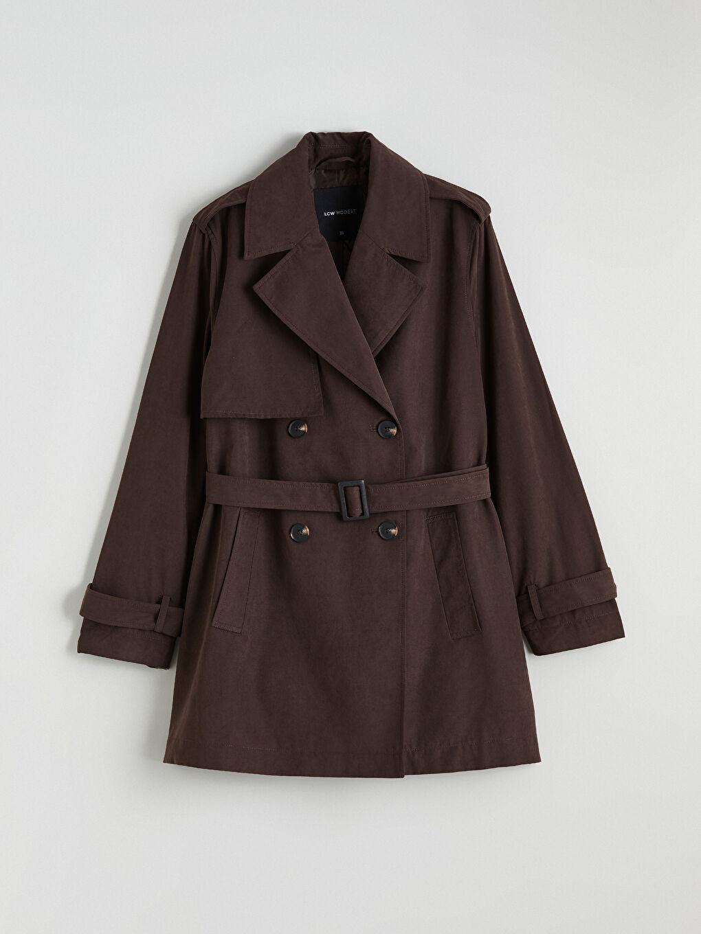 معطف ترينش نسائي بني ذو ياقة متقاطعة من ماركة LCW Modest متوفر لدى LCW مع خصومات حصرية وخيارات تقسيط ومزايا الدفع عند الاستلام! تسوقي الآن عبر الإنترنت وستصلك المنتجات إلى باب منزلك! – S6GJ65Z8-HEC
