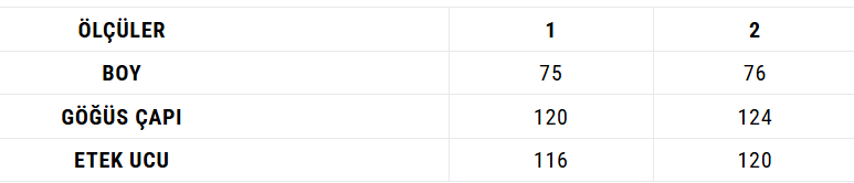 Model Measurements: Height 177cm, Bust 69cm, Hips 89cm.