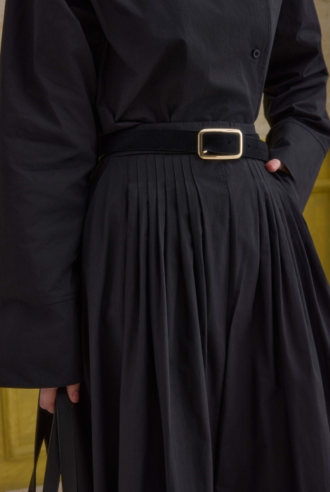 Beli lastikli, kemer köprülü, cepli, rahat kesim, normal kalıp, astarsız, pamuklu kumaştan üretilmiş poplin etek.