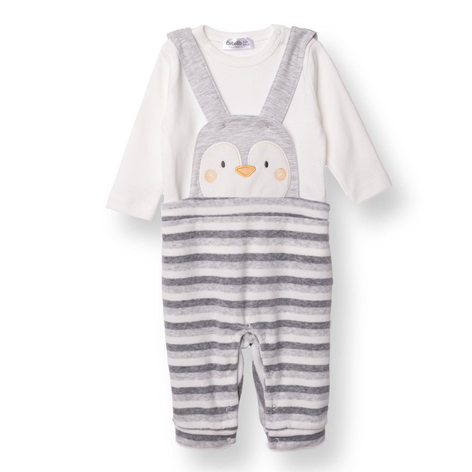 Bebetto Erkek Bebek Yenidoğan Salopet-Sweatshirt Çıtçıtlı Happy Penguin Bisiklet Yaka Uzun Kol Patiksiz Paça Özellikler: