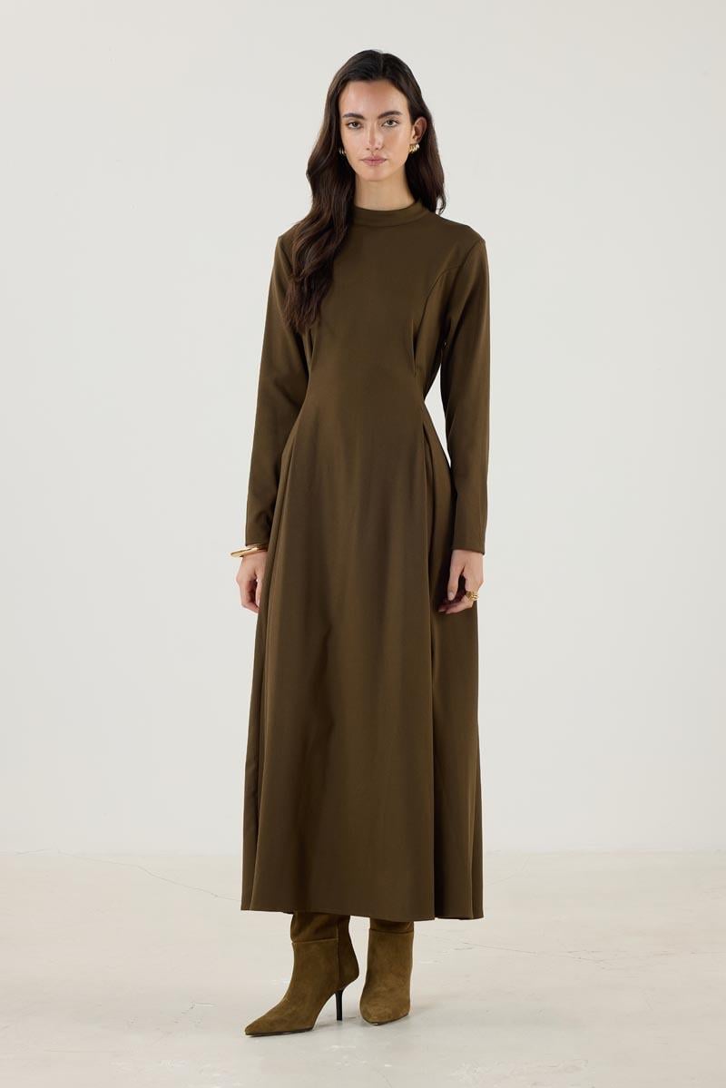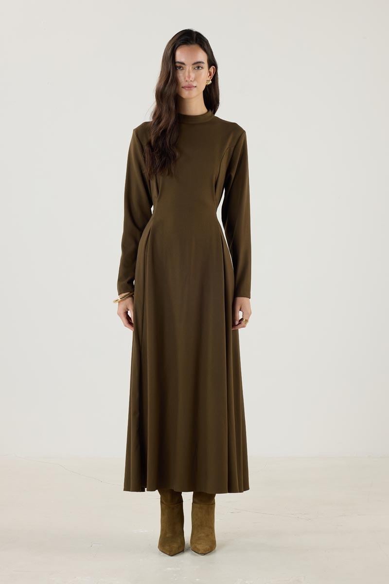 “Çift Pileli Yüksek Yaka Elbise Haki” için ilk yorum yapan siz olun