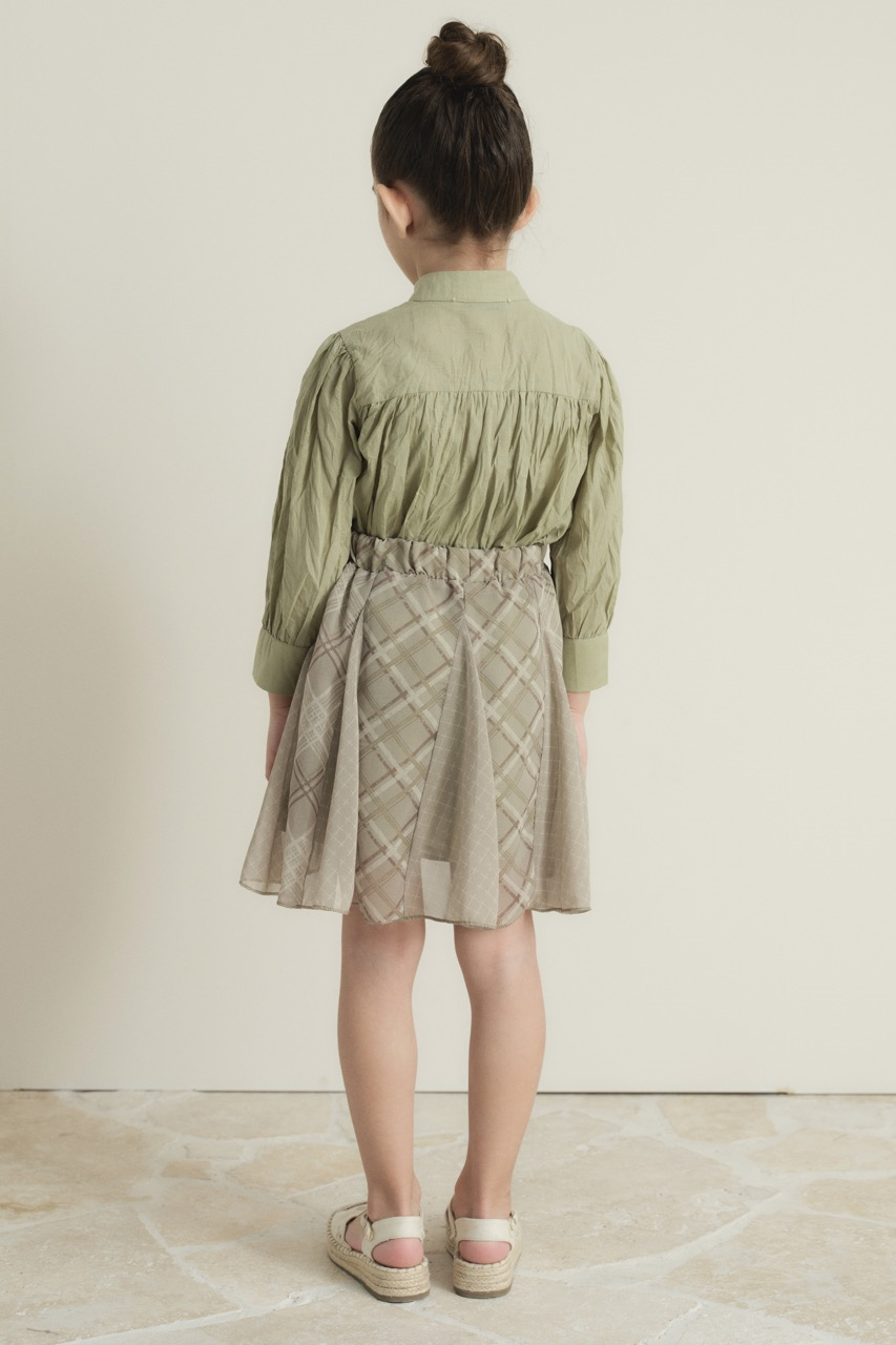 Ekose Şifon Baskılı Etek – Çağla