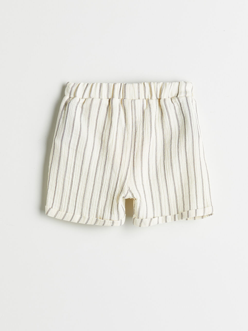 Ekru Beli Lastikli Çizgili Erkek Bebek Şort