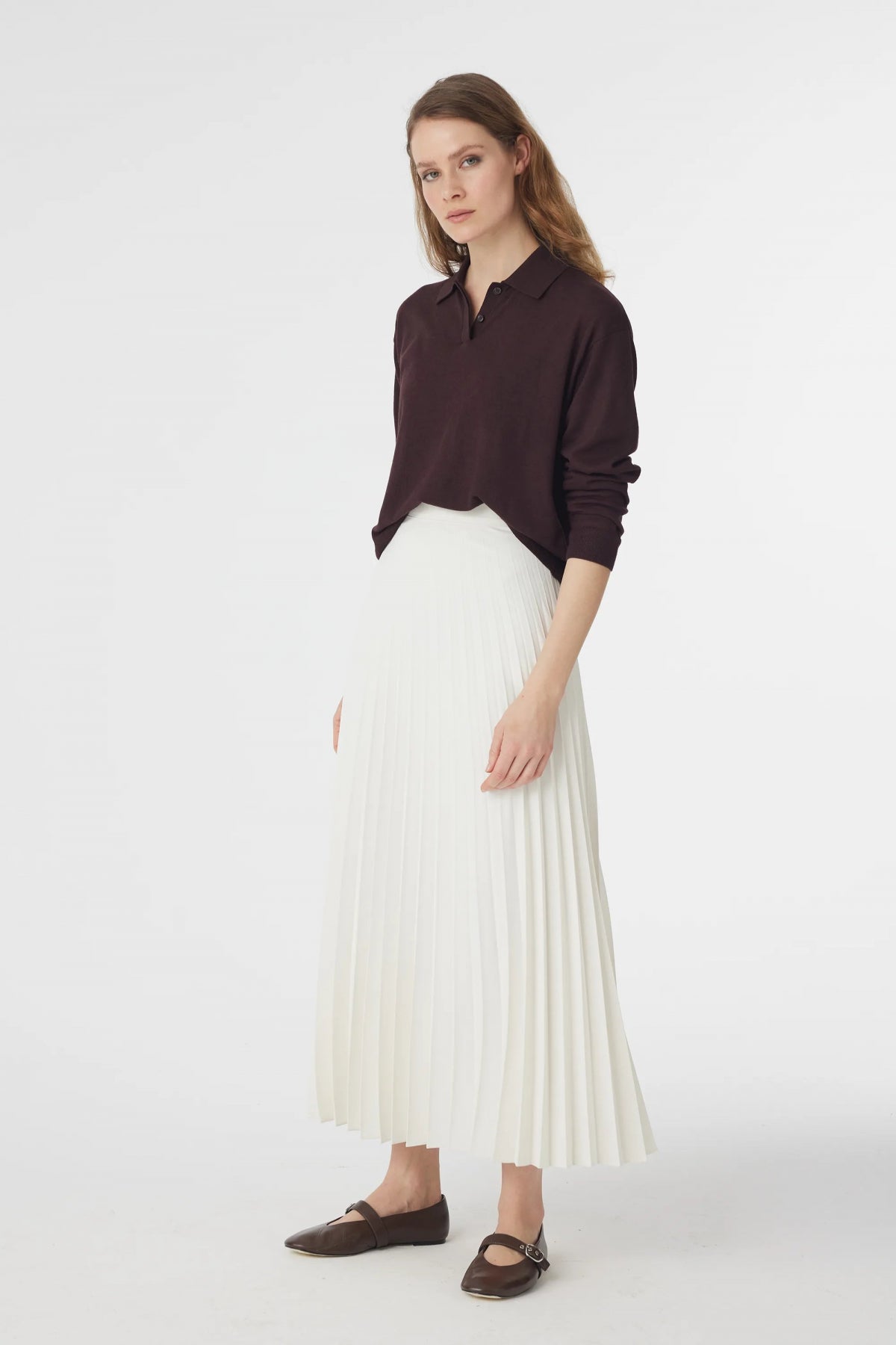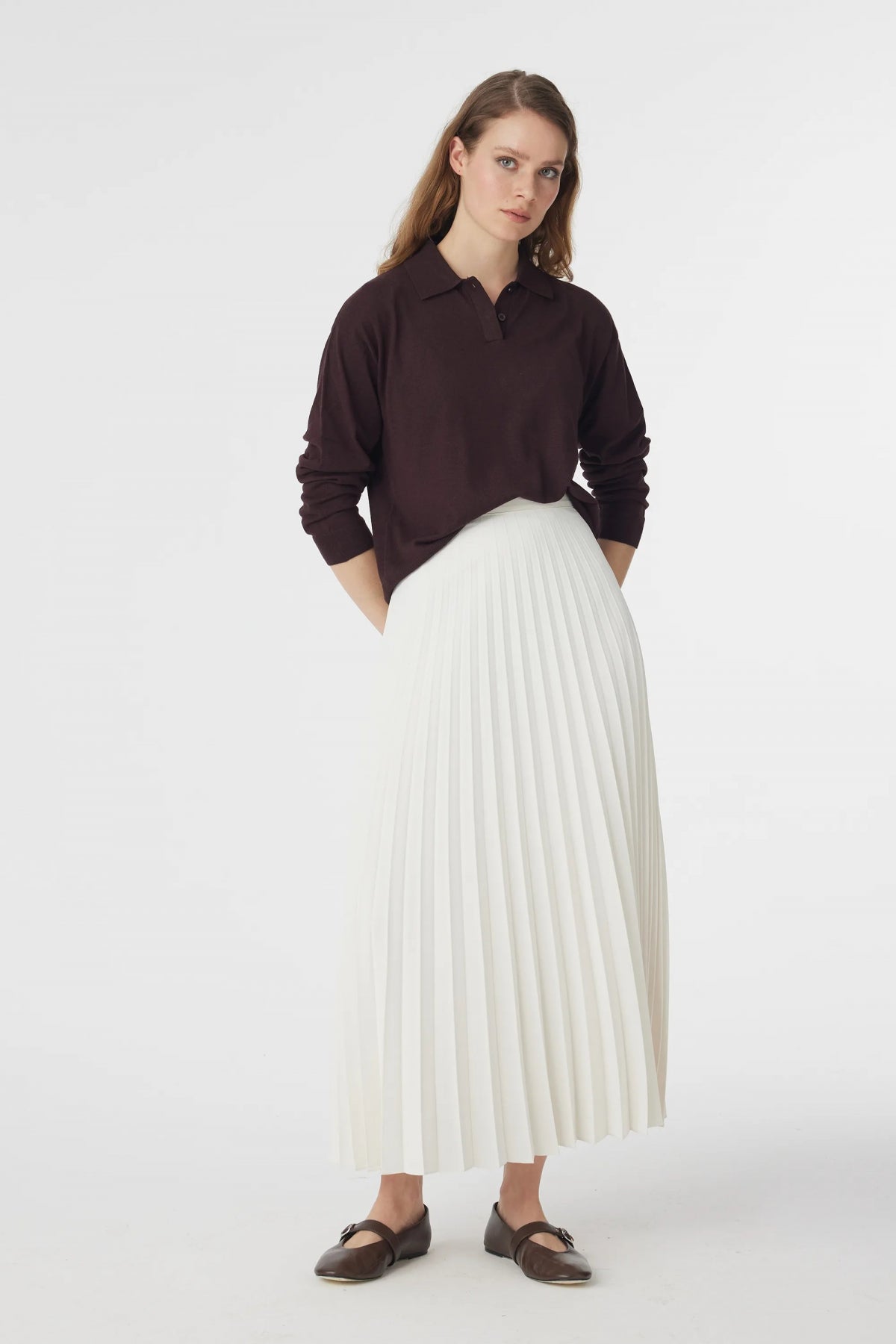 Orta bel, büzgülü, arkadan gizli fermuarlı, yanlardan cepli, premium telalanmış hacimli duran kumaştan iç belli etmeyen astarsız balon etek.