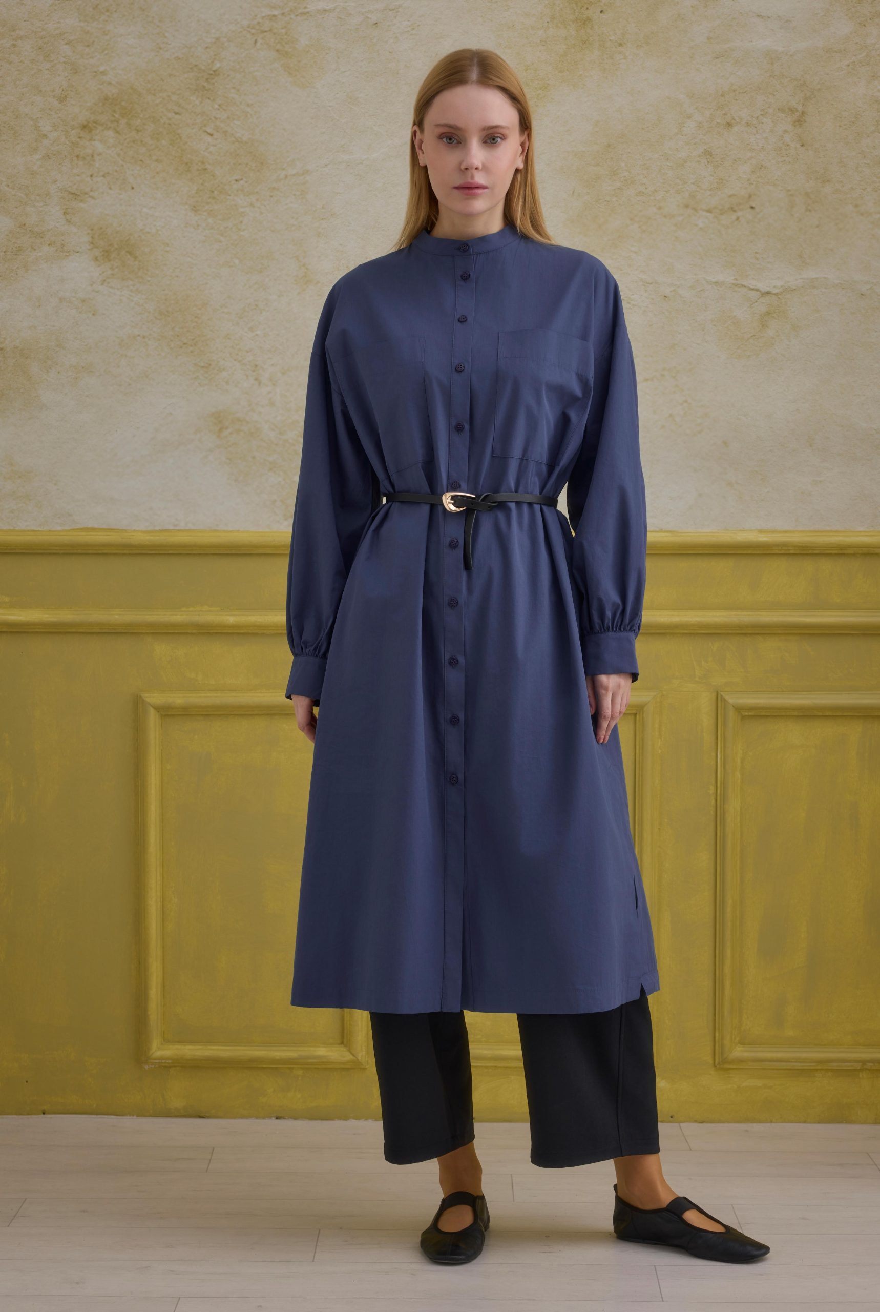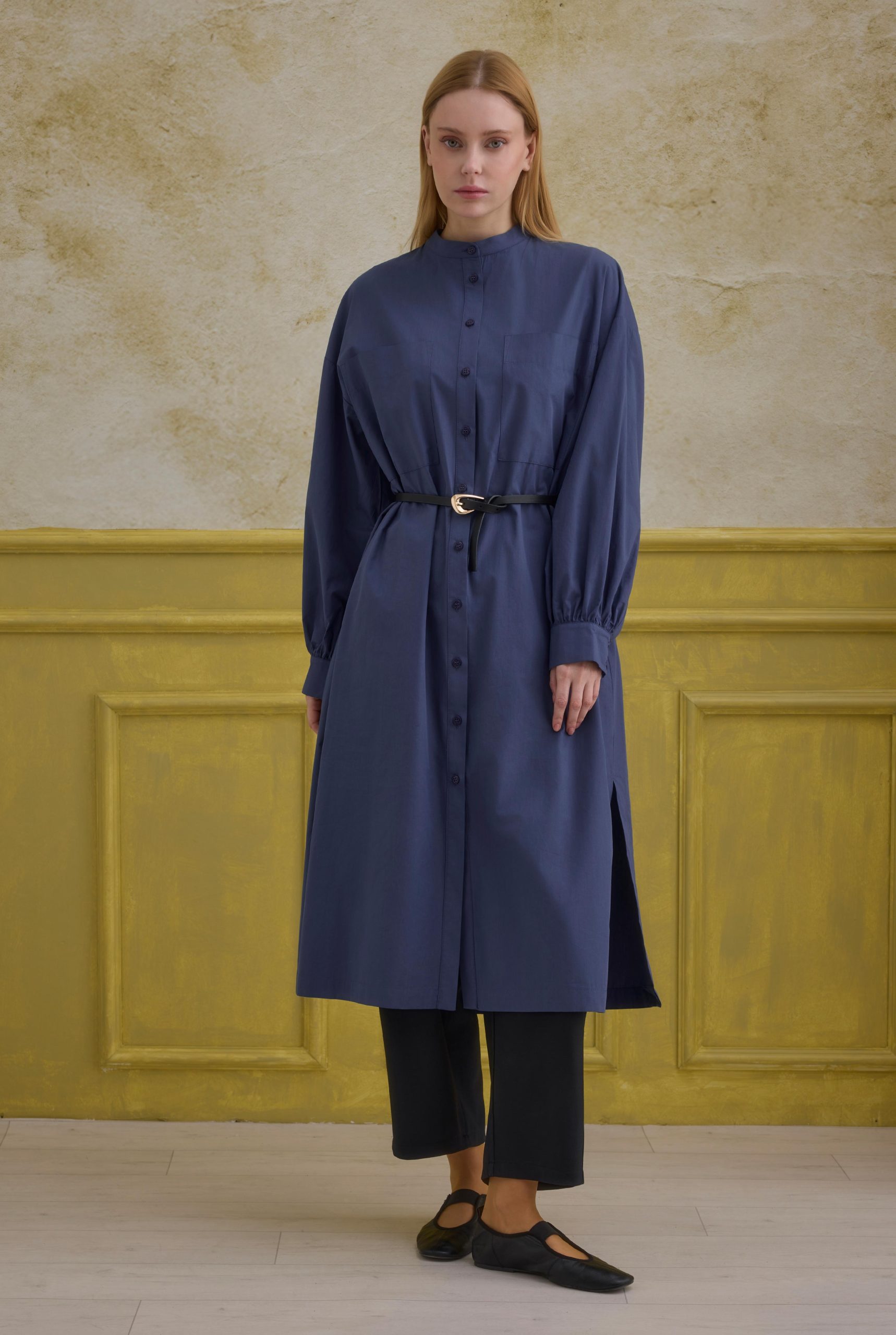 Hakim Yaka Uzun Tunik Koyu Kot Mavi
