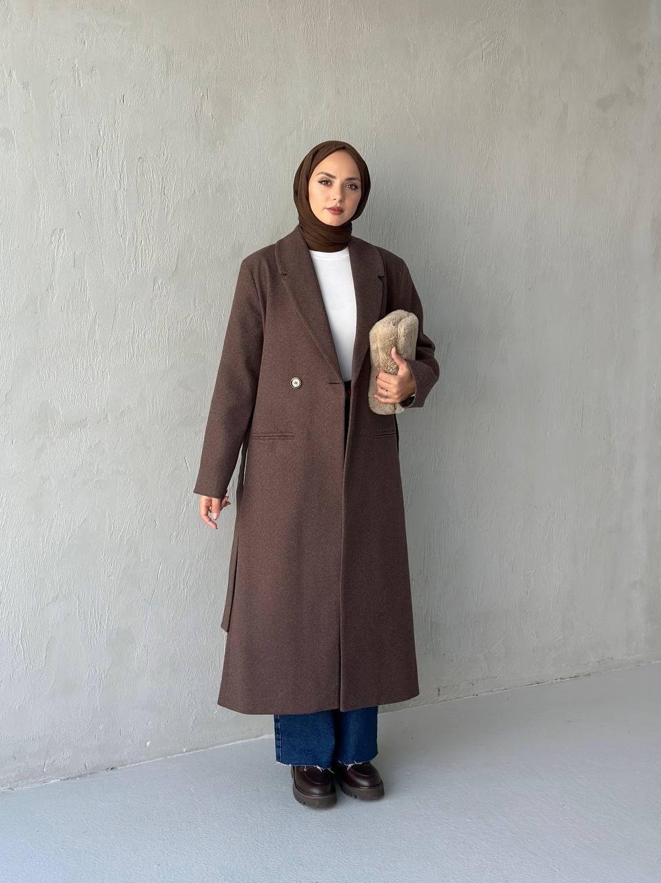 Dik yaka tasarımıyla modern ve güçlü bir duruş sunan bu kaban, sade çizgileri ve zarif formuyla şehir şıklığını sofistike bir seviyeye taşır. Yapısal kesimi silueti kusursuzca şekillendirirken, sıcak tutan dokusu mevsim geçişlerinde konfor sağlar.