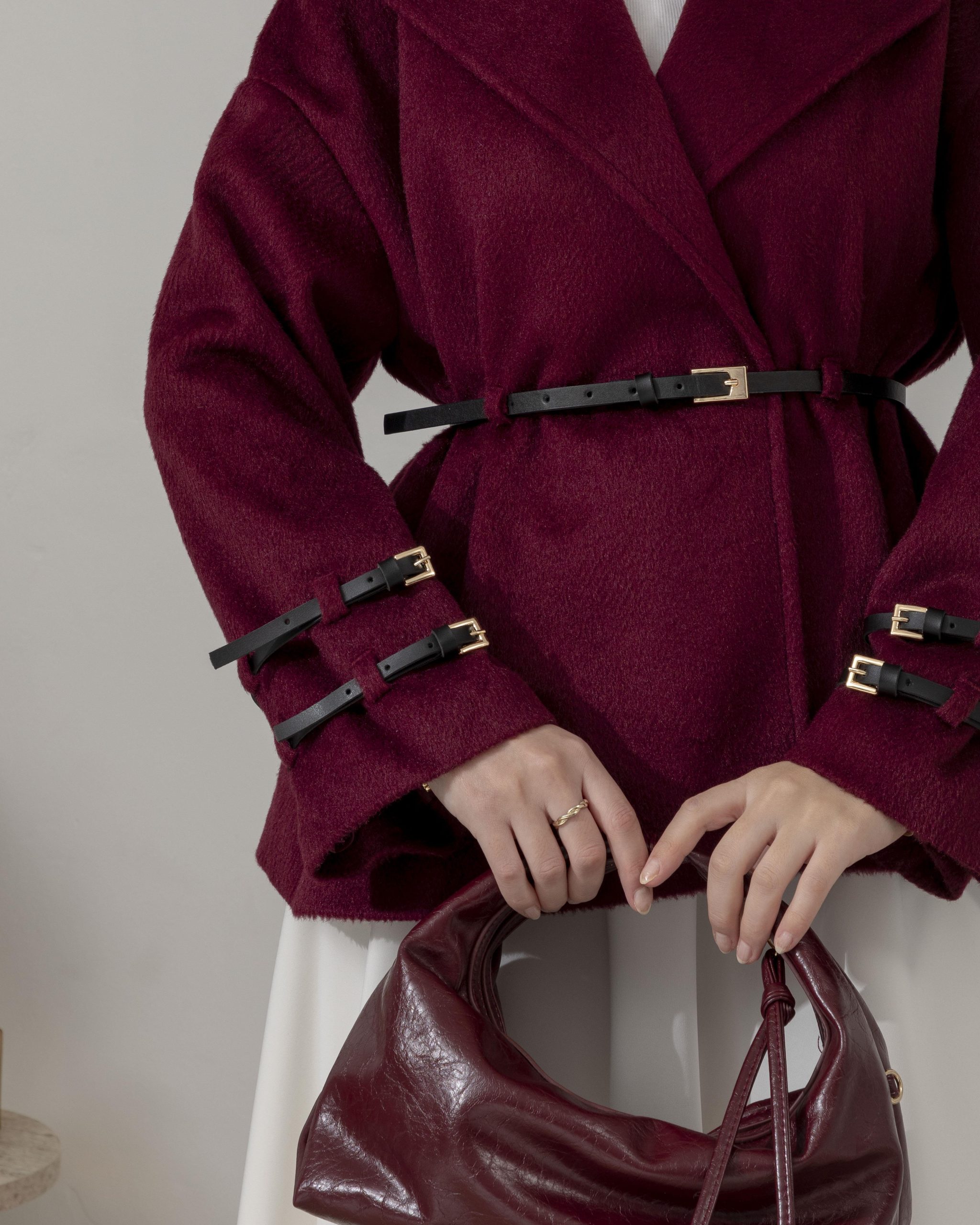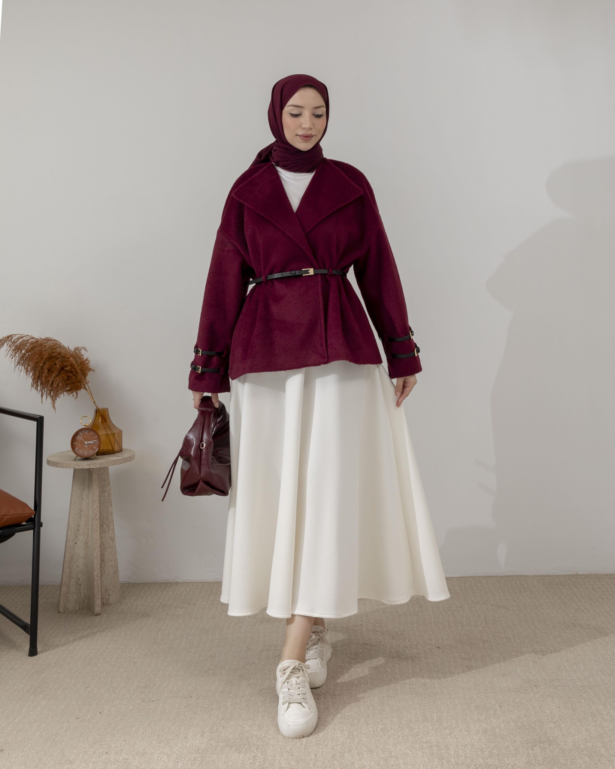 Kemer Detaylı Bordo Kaşe Ceket