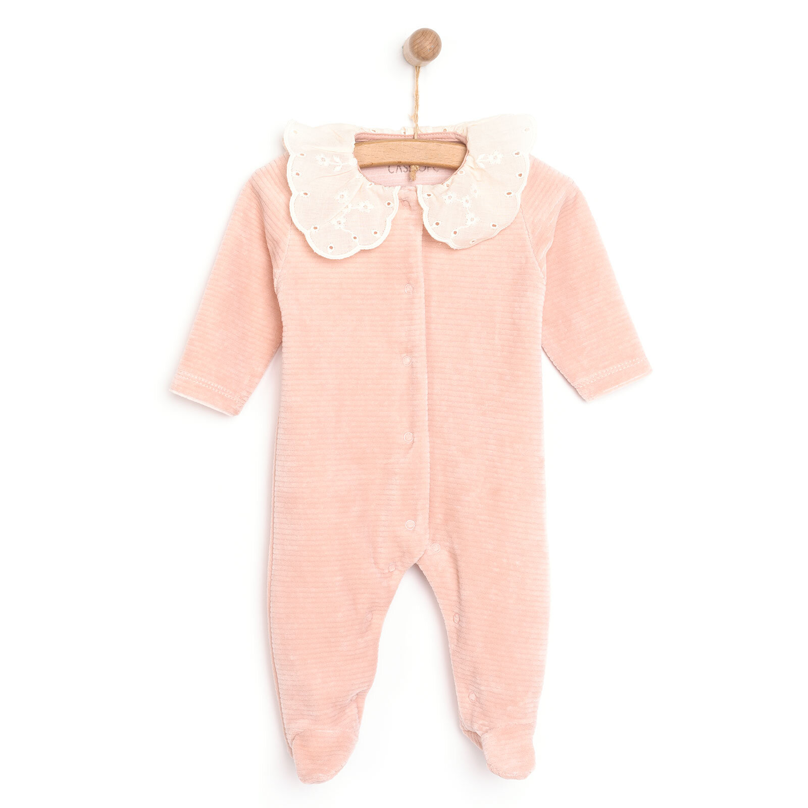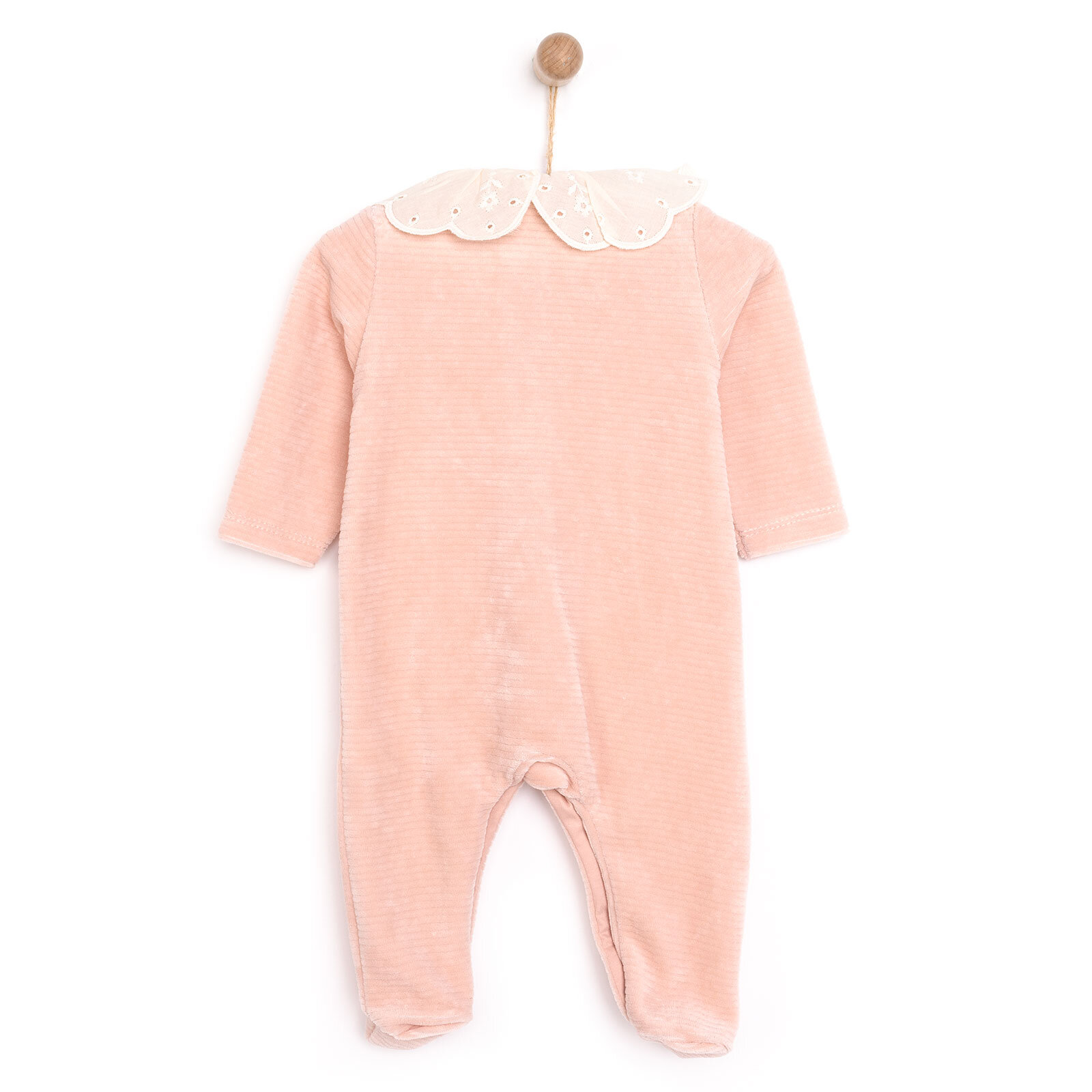 Kız Bebek Patikli Tulum Kadife Modelli Yaka Patiksiz Paça Uzun Kol Gül Kurusu