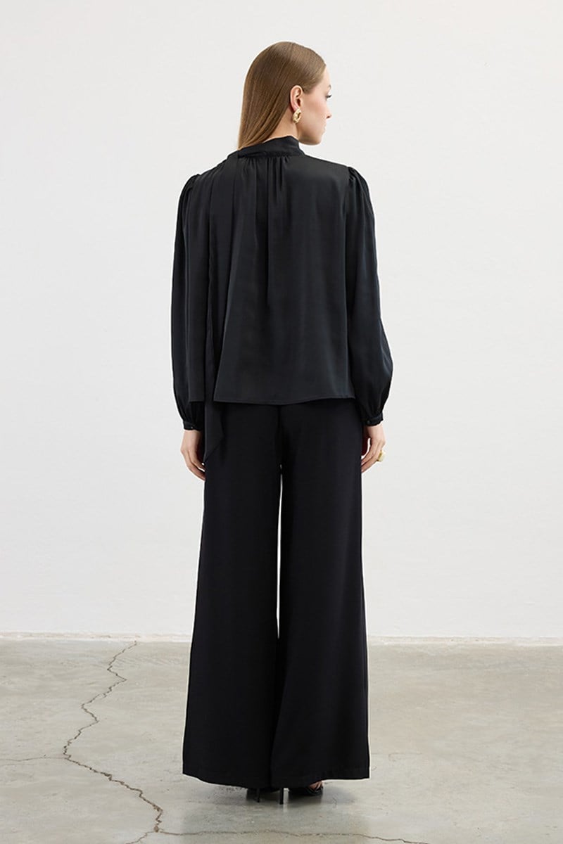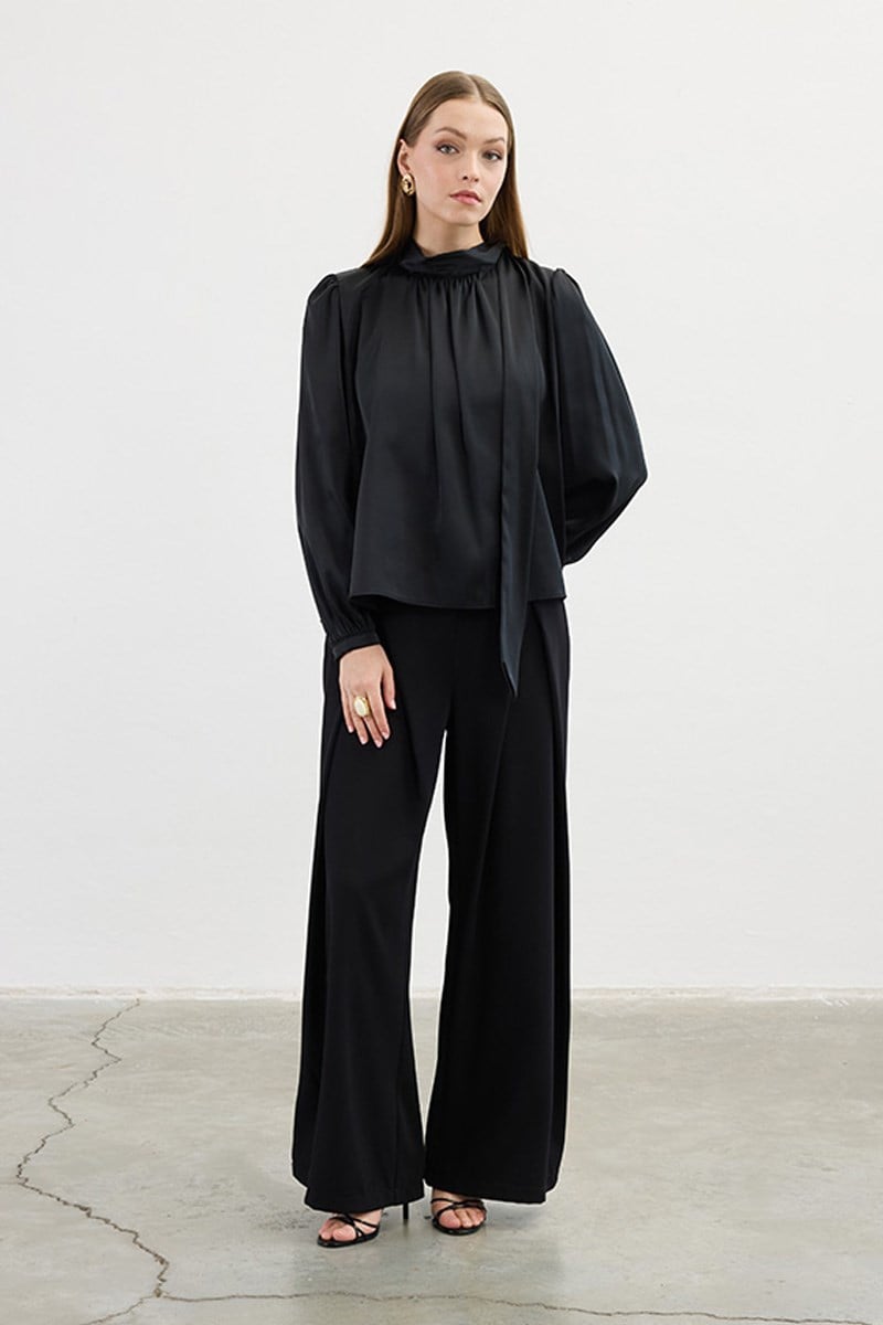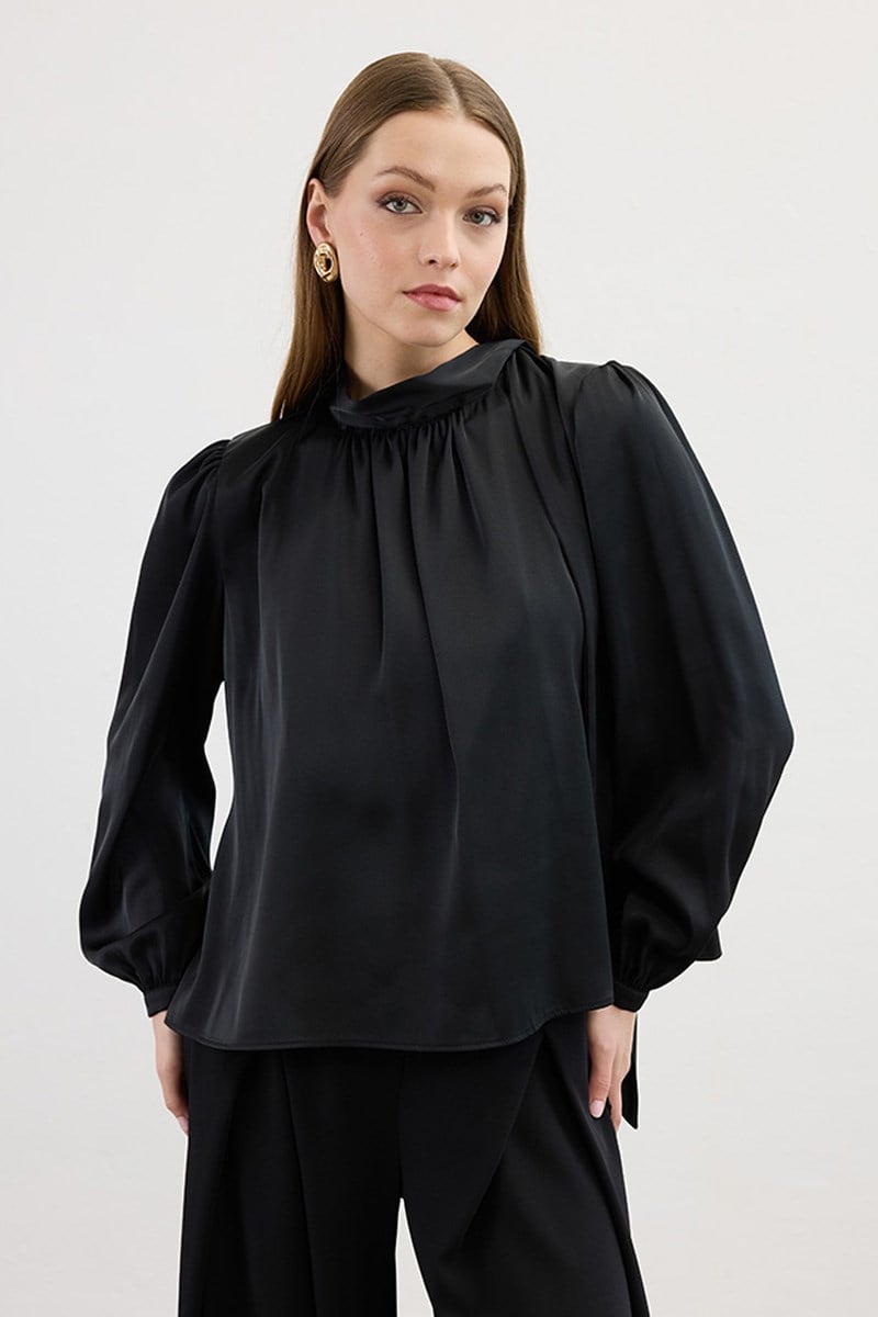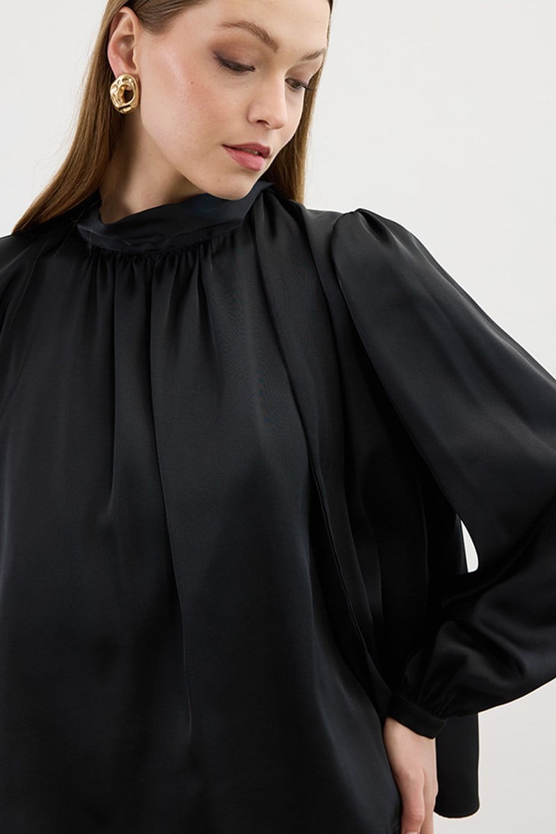 Klasik Saten Bluz Siyah